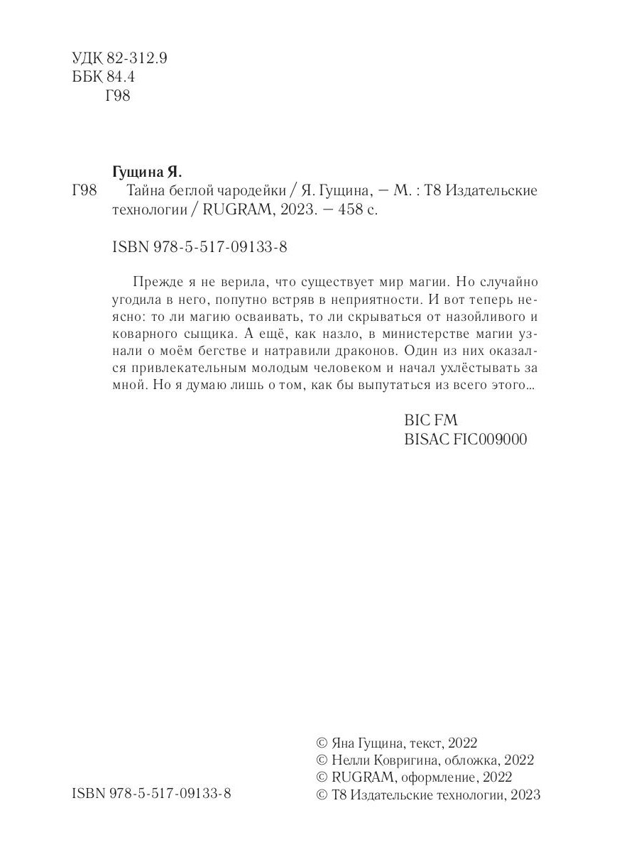 Прежде я не верила, что существует мир магии. Но случайно угодила в него, попутно встряв в неприятности. И вот теперь неясно: то ли магию осваивать, то ли скрываться от назойливого и коварного сыщика. А ещё, как назло, в министерстве магии узнали о моём бегстве и натравили драконов. Один из них оказался привлекательным молодым человеком и начал ухлёстывать за мной. Но я думаю лишь о том, как бы выпутаться из всего этого…| Издательство | Т8 RUGRAM |