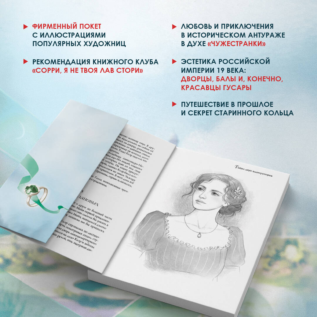 Захватывающая история об обычной девушке из Петербурга, которая попадает в прошлое и оказывается в самой гуще исторических событий начала XIX века. Клэр получила в наследство от бабушки не только необычное французское имя, но и старинное кольцо, навсегда изменившее ее жизнь. Девушка перемещается в начало XIX века, во времена, когда Россия и Франция находятся на пороге войны. Клэр оказывается втянута в схватку двух великих монархов. Чтобы вернуться в свой мир, девушка должна стать тайным агентом императора Александра I и передать мистическое кольцо его законному владельцу - Наполеону. От ее действий зависит будущее мирового порядка и победа Российской империи. Однако сможет ли Клэр исполнить свой долг, рискуя навсегда потерять едва обретенную любовь?