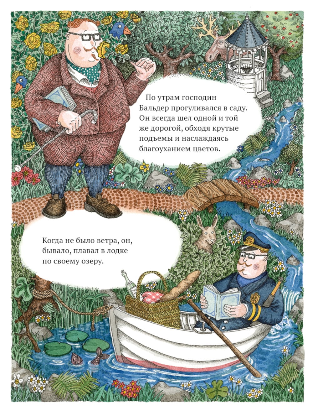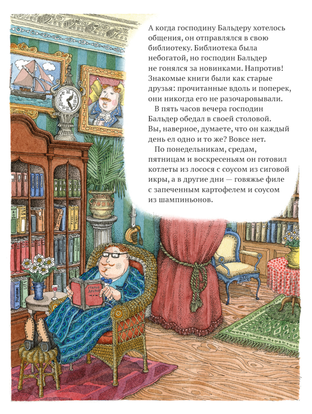Господин Бальдер - отменный повар, виртуозный музыкант и любитель почитать в одиночестве. В его тихой и уютной усадьбе не случается ничего примечательного. Но вот однажды утром в четверг, когда господин Бальдер, как обычно, подкреплялся овсянкой, ему на глаза попалось странное объявление... Якоб Вегелиус - шведский писатель и художник, лауреат премии Августа Стриндберга. В России он прославился благодаря серии книг о горилле Салли Джонс. Необычная творческая манера Вегелиуса привлекает как детей, так и взрослых.