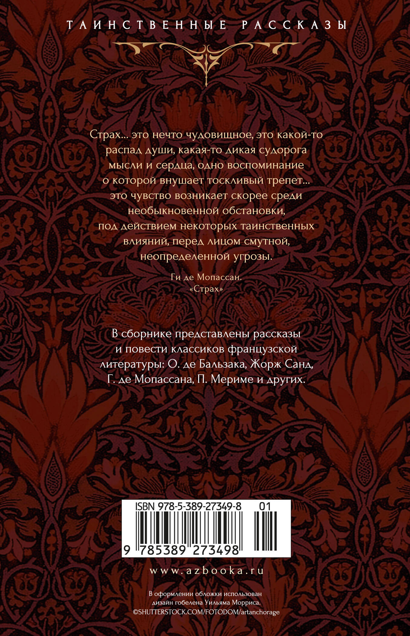 Серия "Таинственные рассказы" - это сборники произведений малой прозы, написанных в XIX - первой половине ХХ века. Истории, в которых вымысел не отличить от факта, сон - от реальности, ложь - от правды, фантазию - от шутки, а игру больного воображения - от реальности, всегда пользовались успехом у читателей. В эпоху романтизма были популярны драматичные сюжеты о мрачных замках, темных подземельях и призраках - готическая литература. Писатели середины XIX века пополнили ее богатые традиции новым подходом к таинственному: художественными исследованиями психики человека, ее возможностей и странностей. Загадочное и необъяснимое оставалось востребованным даже в эпоху философского скептицизма, расцвета науки и триумфа техники. В сборнике представлены рассказы и повести классиков французской литературы: О. де Бальзака, Жорж Санд, Г. де Мопассана, П. Мериме и других.