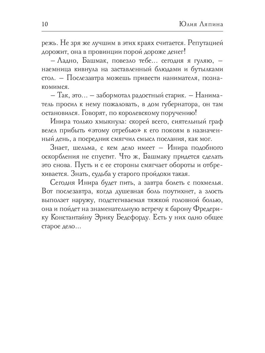 Жизнь Иниры никогда не была простой. Еще совсем юной ей пришлось бежать из родного дома, скитаться в опасном и озлобленном мире, разочароваться во всем и во всех. Но каждое испытание судьбы делало девушку сильнее, подталкивало к тому, чтобы научиться стоять за себя и быть самостоятельной. Работа телохранителя точно не женская. Однако закаленная жизнью Инира хороша в своем деле. Она - профессионал. В своем ремесле девушка обрела смысл жизни. Но наступает момент, когда прошлое со всей силы напоминает о себе. И, похоже, судьба приготовила Инире еще одно испытание. А вместе с ним и второй шанс, который уж точно понадобится, чтобы исправить ошибки прошлого и не наделать новых.