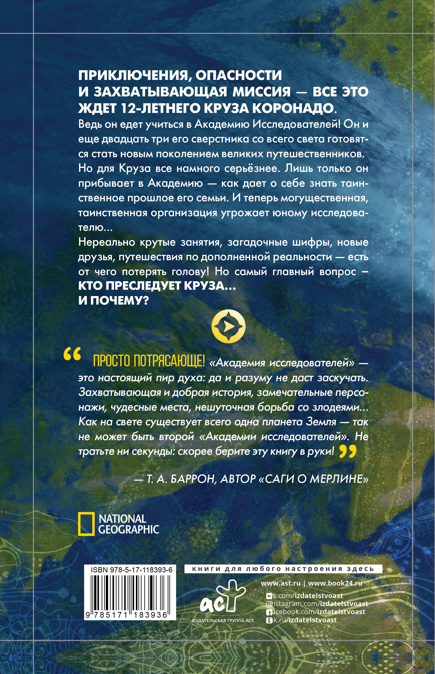 Приключения, опасности и захватывающая миссия - все это ждет 12-летнего Круза Коронадо. Ведь он едет учиться в Академию Исследователей! Он и еще двадцать три его сверстника со всего света готовятся стать новым поколением великих путешественников. Но для Круза все намного серьезнее. Лишь только он приезжает Академию - как дает о себе знать таинственное прошлое его семьи. И теперь могущественная организация угрожает юному исследователю… Нереально крутые занятия, загадочные шифры, новые друзья, путешествия по дополненной реальности - есть от чего потерять голову! Но самый главный вопрос - КТО ПРЕСЛЕДУЕТ КРУЗА… И ПОЧЕМУ?| Издательство | ИЗДАТЕЛЬСТВО "АСТ" |