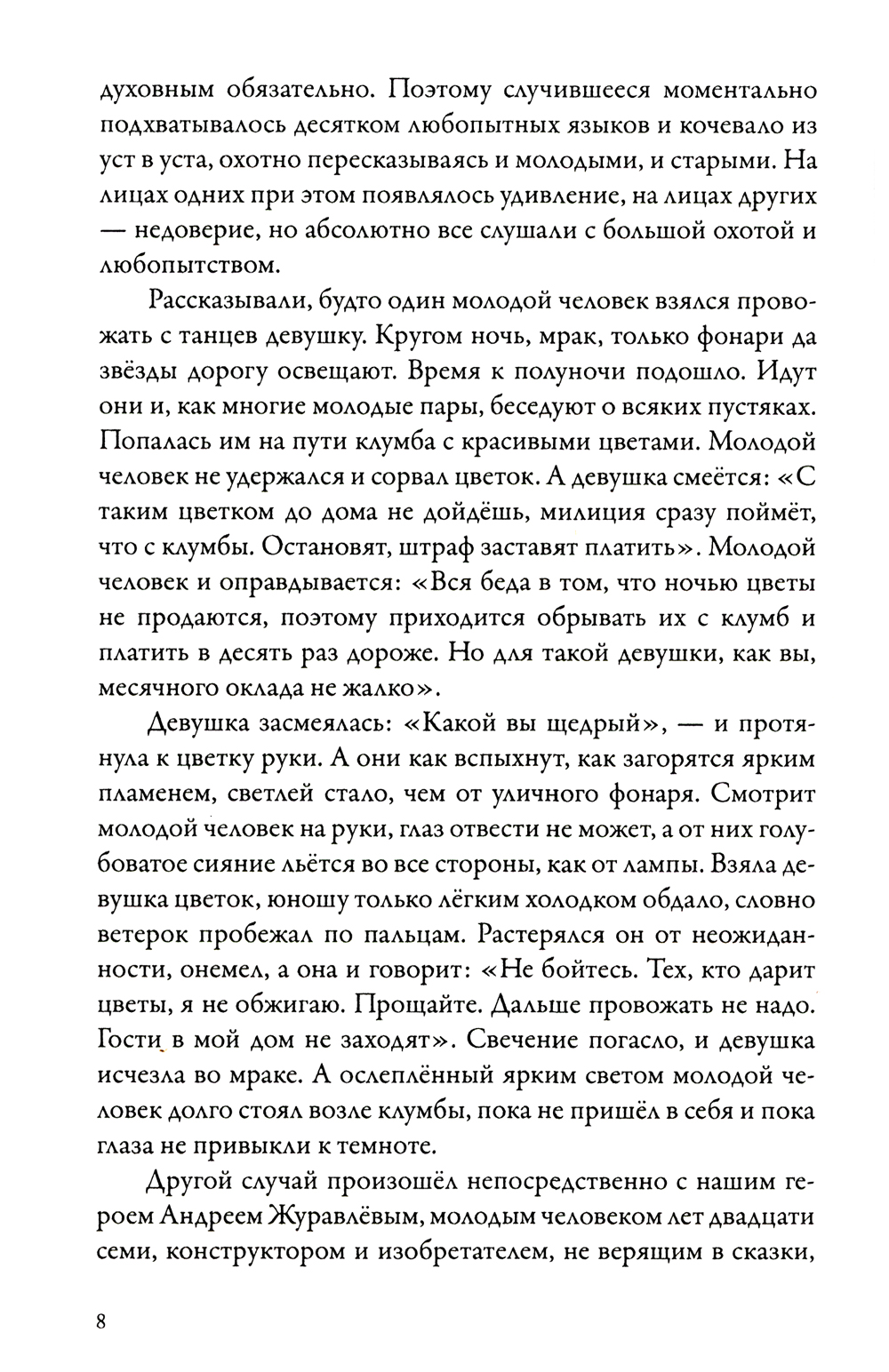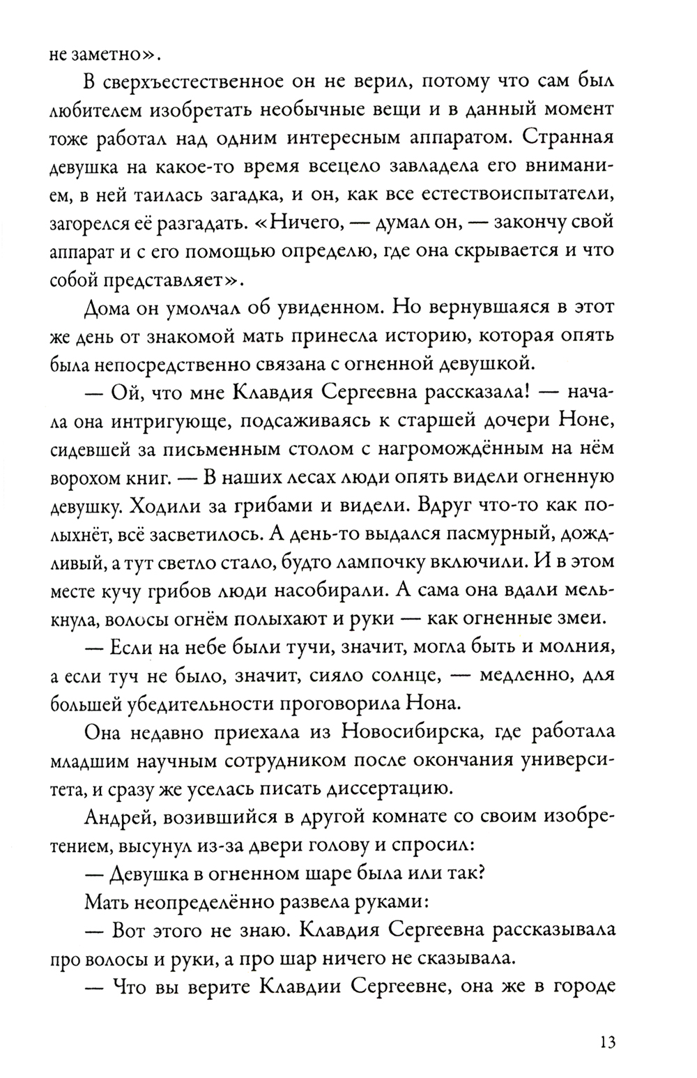 Повесть рассказывает о странном появлении в окрестных местах огненной девушки, о которой рождается много всяких слухов, якобы это Огнёвушка-Поскакушка, от которой горят леса. Группа молодых людей, познакомившись с этой девушкой, решает отправиться в далёкое путешествие в Тибет, где живёт племя, владеющее тайными знаниями. Их продвижение по намеченному маршруту полно всяких приключений. Но молодые люди, обладающие большим чувством юмора, прекрасно справляются со всеми испытаниями, выпадающими на их долю. Книга полна приключений, которые перемежаются рассуждениями молодых людей о жизни и природе вещей. Сами герои смелы и обладают прекрасным чувством юмора, они способны на сильные чувства и подвиги духа во имя знаний и любви.| Издательство | ИП Гарасс А.Я. |