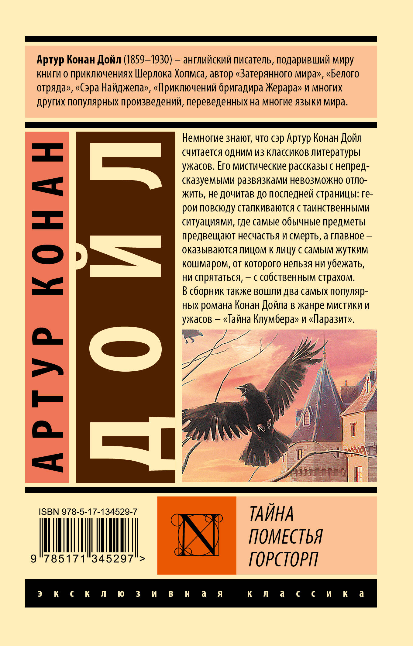 Немногие знают, что сэр Артур Конан Дойл считается одним из классиков литературы ужасов. Его мистические рассказы с непредсказуемыми развязками невозможно отложить, не дочитав до последней страницы: герои повсюду сталкиваются с таинственными ситуациями, где самые обычные предметы предвещают несчастья и смерть, а главное - оказываются лицом к лицу с самым жутким кошмаром, от которого нельзя ни убежать, ни спрятаться, - с собственным страхом. В сборник также вошли два самых популярных романа Конан Дойла в жанре мистики и ужасов - "Тайна Клумбера" и "Паразит".| Издательство | ИЗДАТЕЛЬСТВО "АСТ" |
