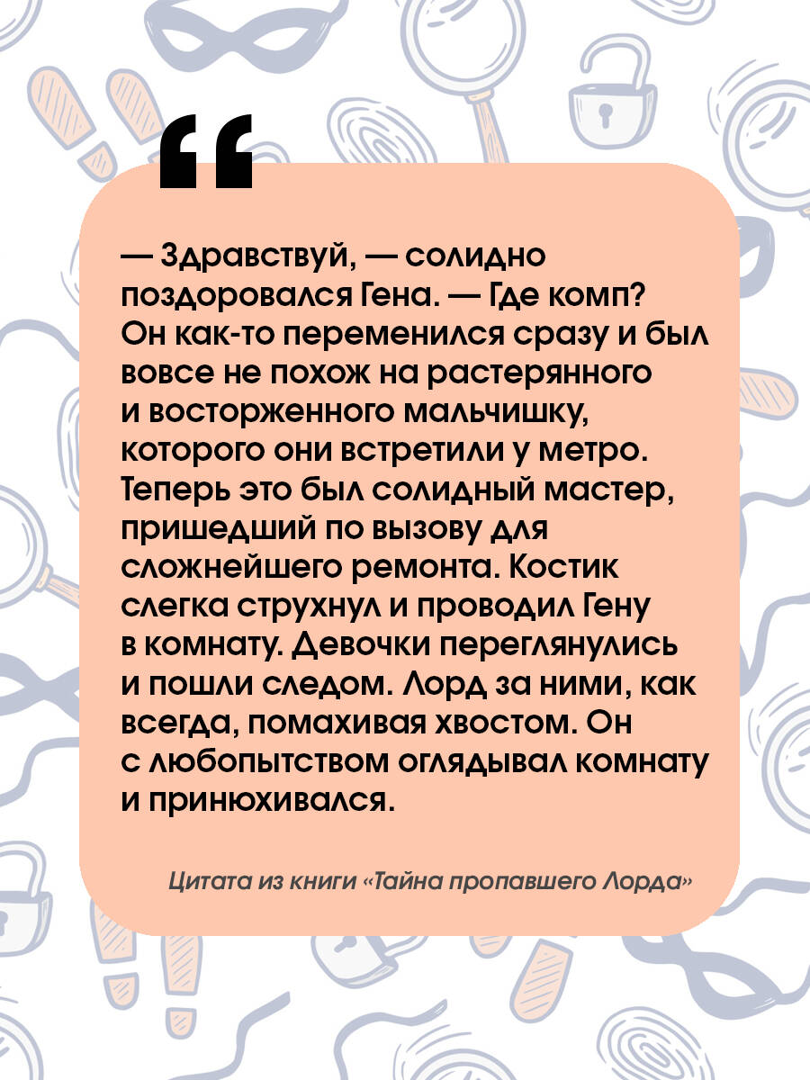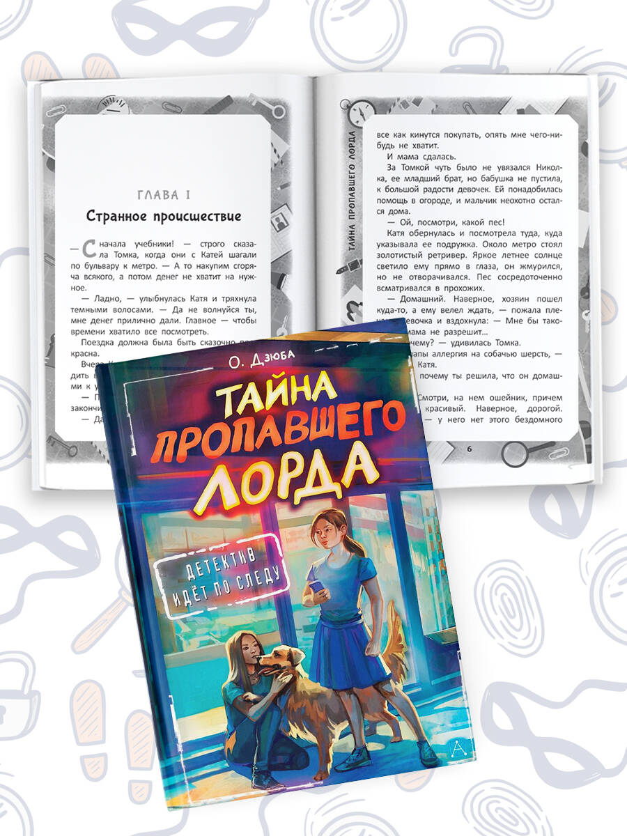 Однажды Катя и Тома отправились в книжный магазин и у метро заметили одинокого золотистого ретривера. Подруги было подумали, что пёс ждёт хозяев, однако вскоре выяснилось, что ретривер потерялся. Катя и Тома решают помочь дружелюбному пёсику: по номеру телефона на ошейнике они находят адрес его хозяев. Однако на месте выясняется, что квартира продана, а хозяева переехали. Пытаясь выяснить новый адрес, девочки случайно становятся свидетельницами преступления… Смогут ли Катя и Тома вернуть Лорду дом и не попасть в лапы преступников, узнаете из детективной повести Ольги Дзюба - «Тайна пропавшего Лорда».| Издательство | Издательство "АСТ" |