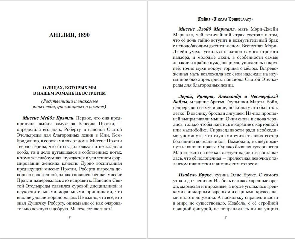 Финалист премии "Русский детектив" 2021 г. в номинации "Детский детектив". Суперпопулярная книга от автора «Нежной войны»! Книги Джули Берри номинировались на медаль Карнеги! 1200 отзывов на сайте Гудридз! Эта книга переведена на несколько европейских языков и везде пользуется огромным успехом. Действие происходит в закрытой школе-интернате для девочек. Во время обеда замертво падает директриса и её брат. Семь воспитанниц остаются без попечителей и готовы пойти на всё, чтобы не возвращаться домой, а жить одним в пансионе. Рекомендуем и девочкам, и их мамам, и даже бабушкам! Семеро воспитанниц понимают, что миссис Плакетт и мистера Годдинга отравили, но кто?! И ведь если об этом узнают соседи, то школу наверняка закроют, а девушек отправят по домам. А тем временем в школу один за другим очень некстати прибывают посетители (например, влюблённый в директрису адмирал!). Поэтому девушки решили сделать вид, что ничего не произошло и скрыть преступление. К тому же оказалось, что финансовые дела директрисы совсем плохи. Так на какие средства содержалась школа?! И кто всё-таки убийца? Каждая из школьниц талантлива по-своему, объединив усилия, они берутся за расследование.| Издательство | ООО "Издательство "Эксмо" |
