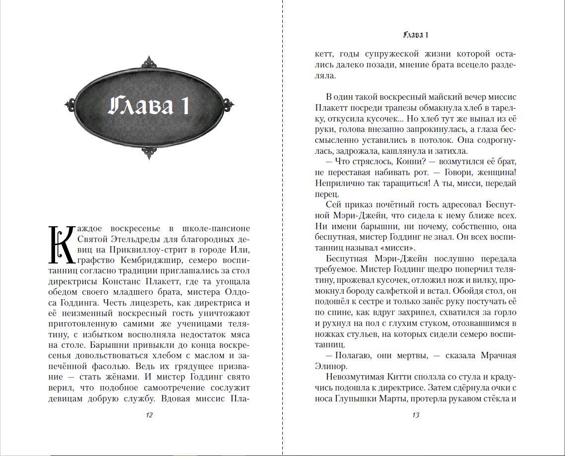 Полюбившаяся история Джули Берри, автора «Нежной войны», теперь в новом оформлении! Захватывающий камерный подростковый детектив для всех поклонников «Детективного агентства Агаты» и «Башни с воспоминаниями». Действие происходит в закрытой школе-интернате для девочек. Во время обеда замертво падает директриса и её брат. Семь воспитанниц остаются без попечителей и готовы пойти на всё, чтобы не возвращаться домой, а жить одним в пансионе. Рекомендуем и девочкам, и их мамам, и даже бабушкам! Семеро воспитанниц понимают, что миссис Плакетт и мистера Годдинга отравили, но кто?! И ведь если об этом узнают соседи, то школу наверняка закроют, а девушек отправят по домам. А тем временем в школу один за другим очень некстати прибывают посетители (например, влюблённый в директрису адмирал!). Поэтому девушки решили сделать вид, что ничего не произошло, и скрыть преступление. К тому же оказалось, что финансовые дела директрисы совсем плохи. Так на какие средства содержалась школа?! И кто всё-таки убийца? Каждая из школьниц талантлива по-своему, объединив усилия, они берутся за расследование. Роман - международный бестселлер, финалист премии «Русский детектив» 2021 г. в номинации «Детский детектив». Книги Джули Берри номинировались на медаль Карнеги!