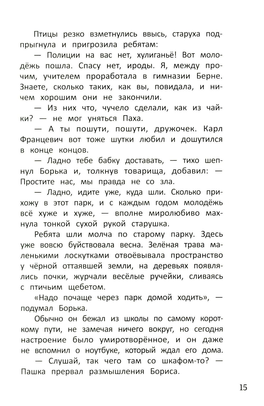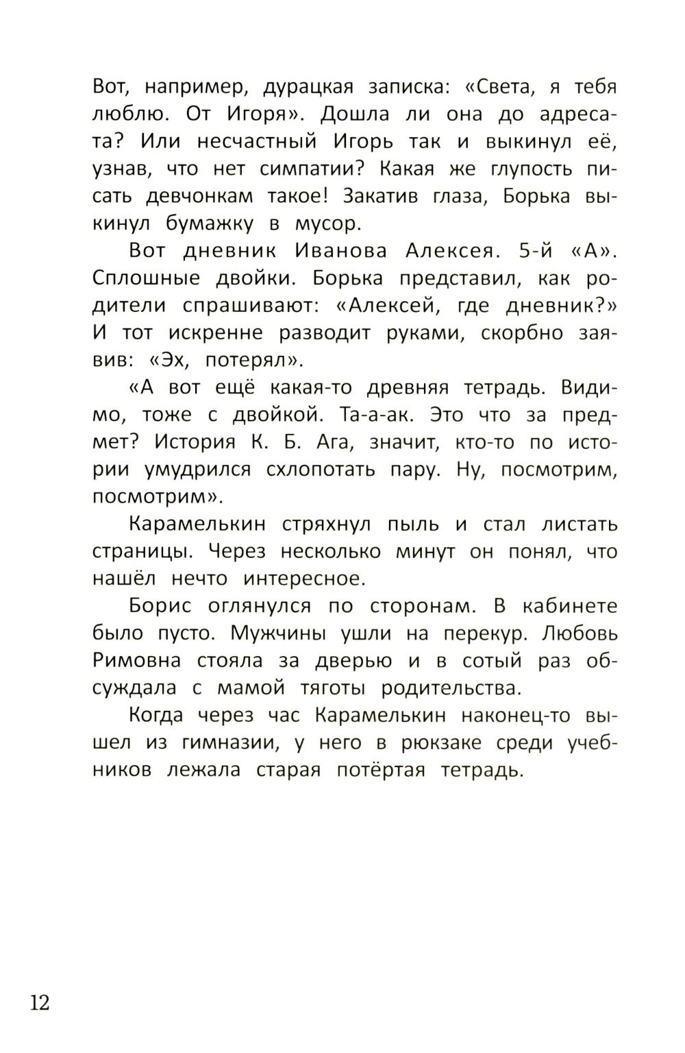 Боря Карамелькин и Настя Зайцева - полные противоположности. Их ничего не связывает до тех пор, пока Борис не находит загадочный дневник с расследованием о сокровищах купца Карла Берне. Теперь ребята идут по следу, который оборвался много лет назад. Их цель - найти знаменитый медальон Берне, пропавший при трагических обстоятельствах. Смогут ли герои отыскать сокровище, которое разделило Карла Берне с его семьёй, и поможет ли оно Насте с Борей лучше узнать друг друга?| Издательство | Феникс |