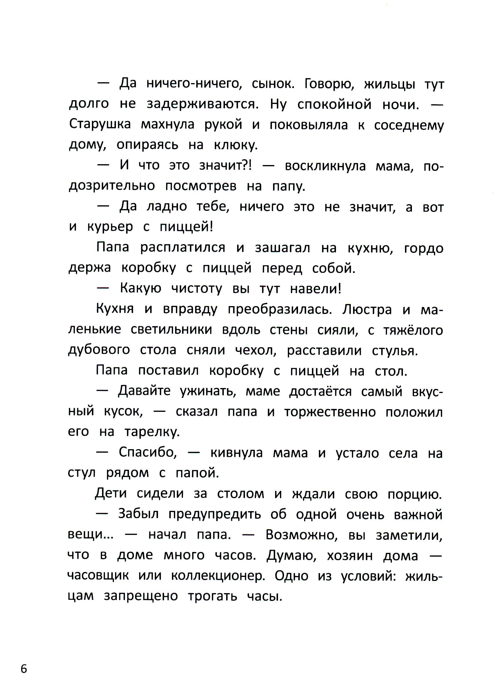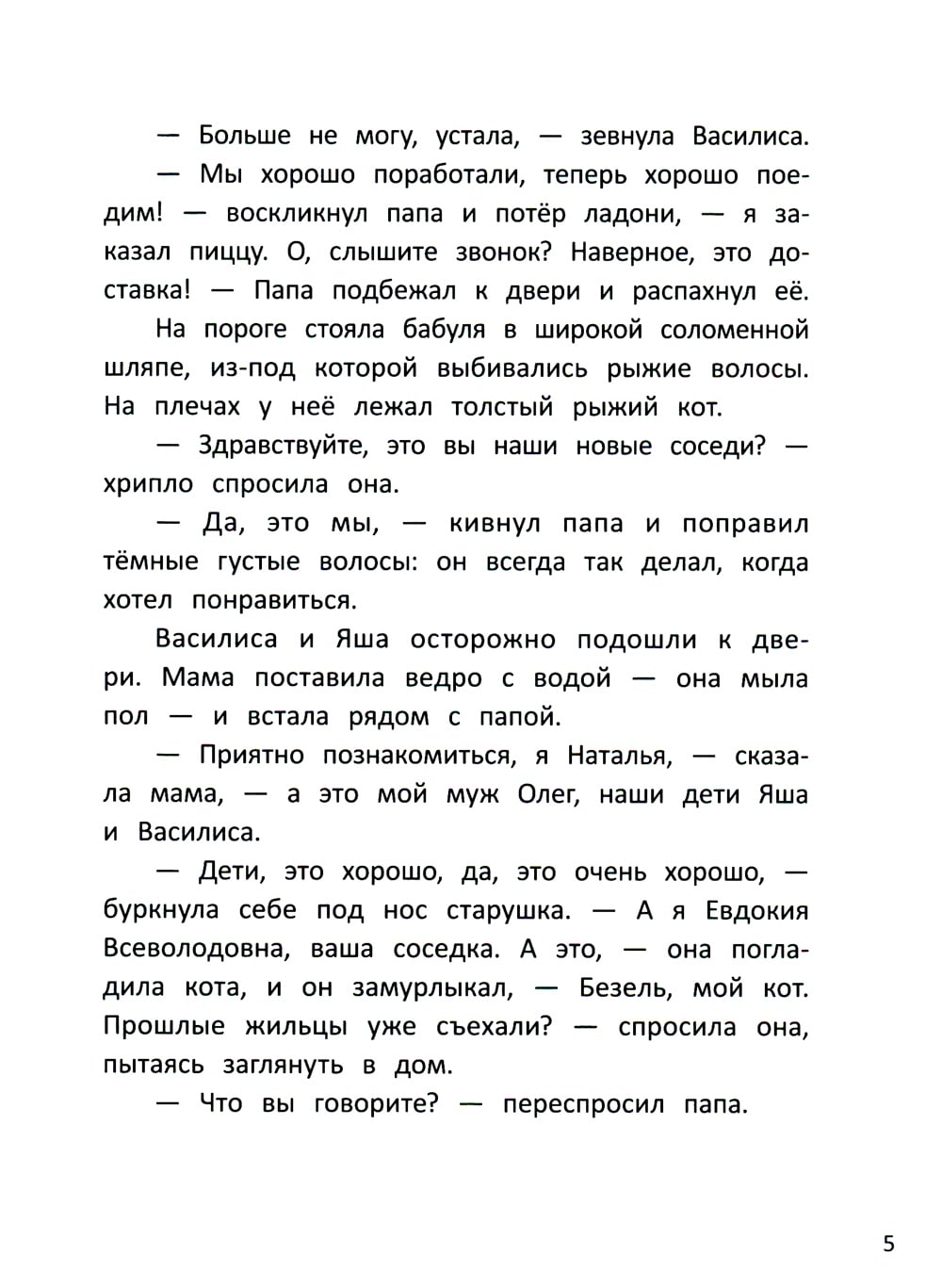 Василиса и Яша переезжают с родителями в новый город. Невероятно, но просторный двухэтажный дом им предлагают снять за сущие копейки! Папа в восторге, дети счастливы, мама уже разбирает вещи. Но куда подевались предыдущие жильцы? Что это за маленькие почтовые ящики на плинтусах и странные скрипы в стенах по ночам? Почему по всему дому развешаны часы и соседская бабушка так сильно похожа на ведьму? Раскройте все тайны Сырной улицы с Василисой и Яшей! 2-е издание.