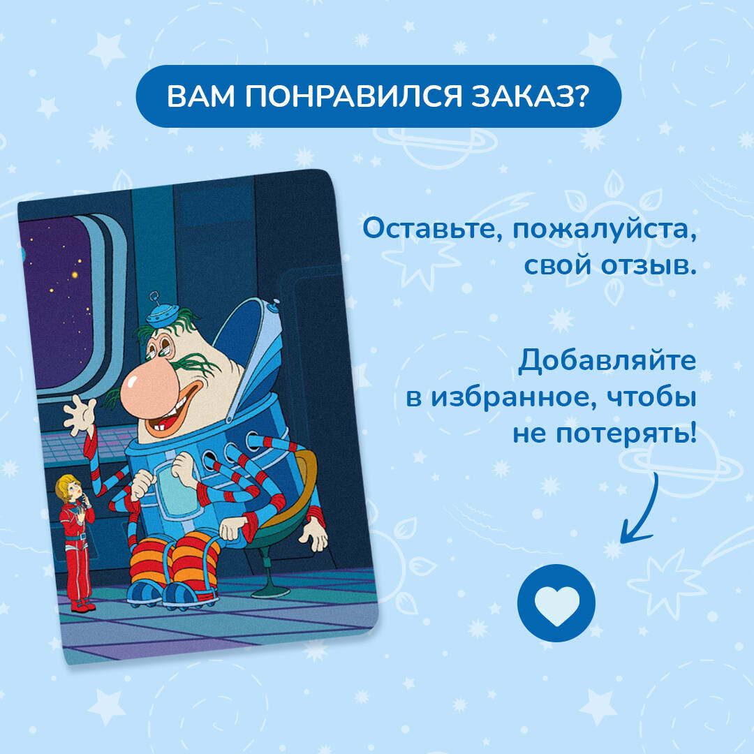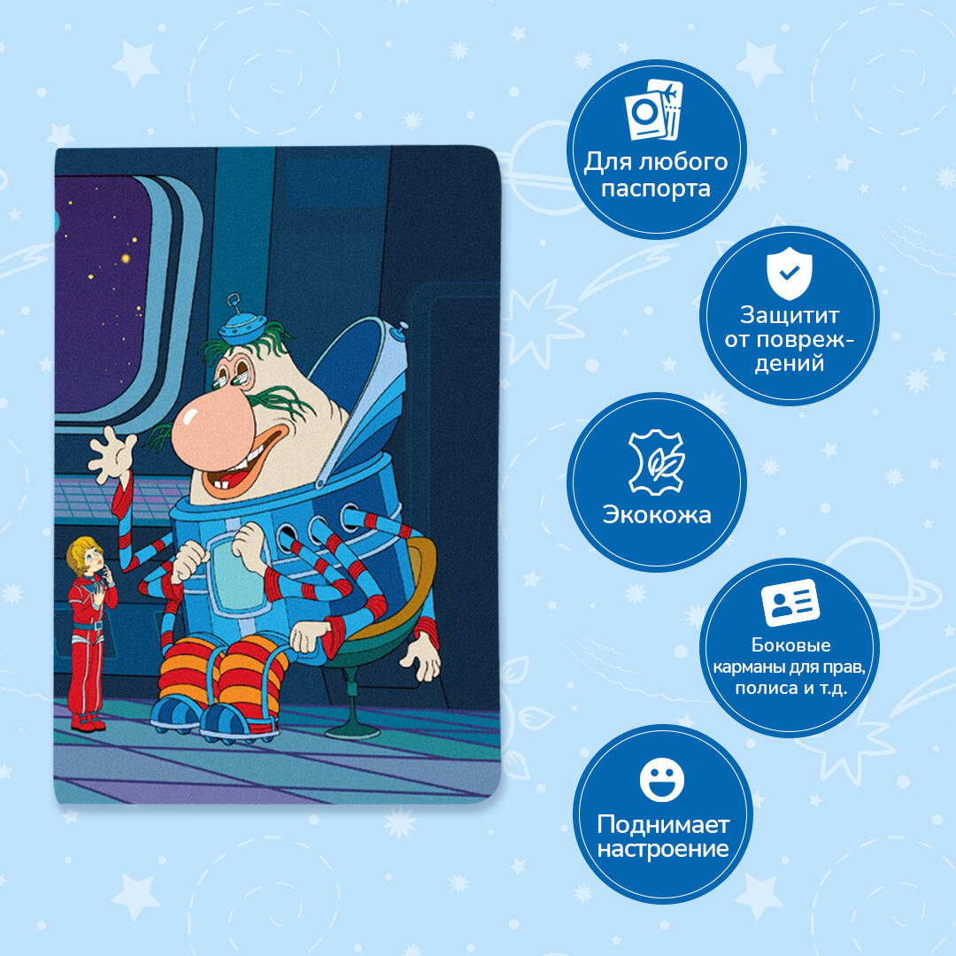 Космическая обложка на паспорт по научно-фантастическому мультфильму «Тайна третьей планеты». Большие и маленькие любители далеких-далеких галактик останутся в восторге. Внимание! Обложка на паспорт вызывает ностальгию. Рекомендуем дарить детям и взрослым всех возрастов. Обложка подходит для отечественного и заграничного паспорта. Ее размер в закрытом виде 9,35х13,5 см, а в открытом - 18,7х13,5 см. Материал ПВХ. Обложка защитит ваш паспорт от повреждений, а также скрасит походы в МФЦ, налоговую и ожидание в очереди на регистрацию на рейс. Банковские карты, СНИЛС, полис, фотографии любимых, водительские права - все уместится в боковых карманах паспорта. Обложка для паспорта сделана ко Дню космонавтики и премьере фильма «Сто лет тому вперед» («Гостья из будущего»). Главные роли исполнили: Константин Хабенский, Александр Петров, Федор Бондарчук.