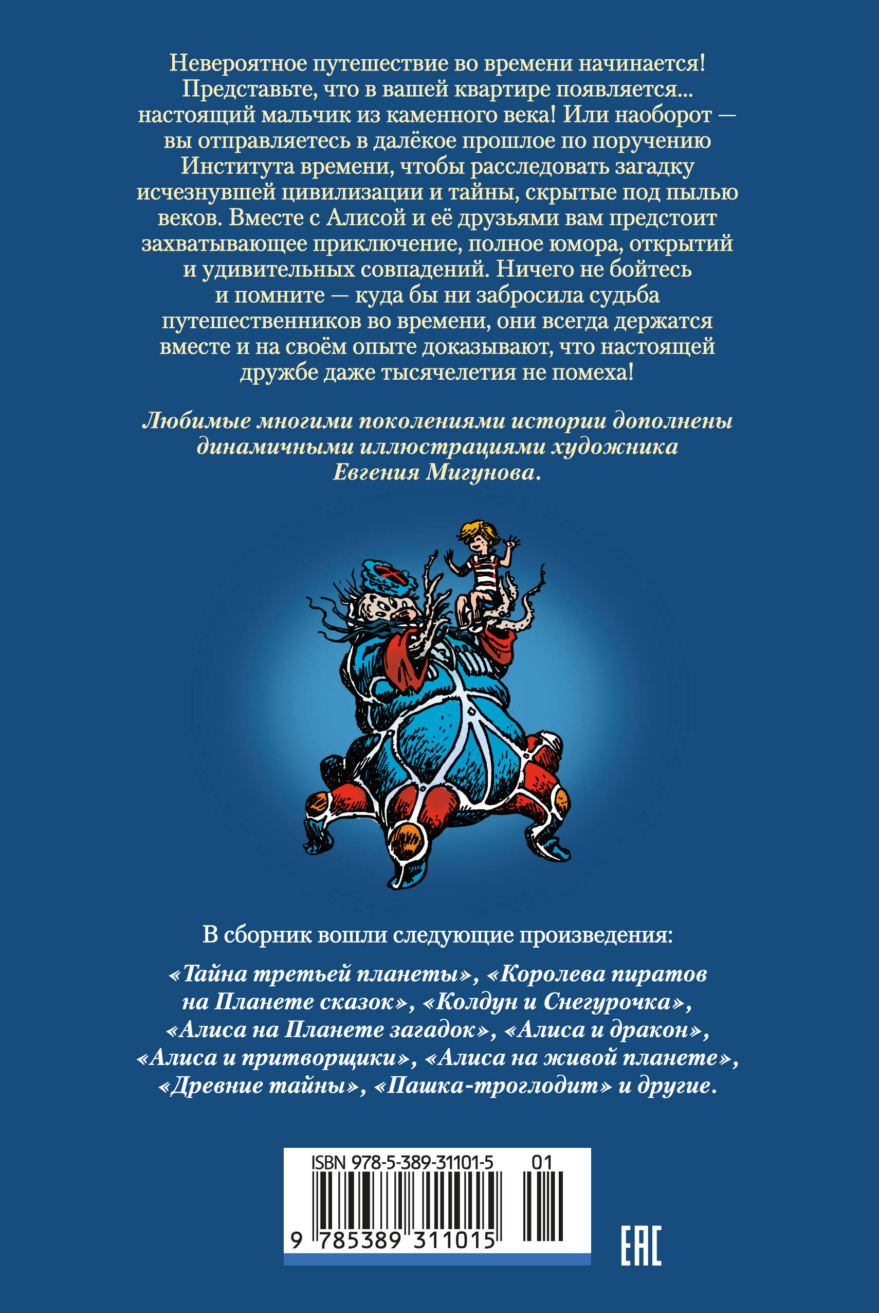 Новинка в серии «Детская библиотека. Большие книги» от издательства «Азбука» - седьмой сборник историй о приключениях Алисы Селезнёвой и её друзей Пашки Гераскина и Аркаши Сапожкова! Невероятное путешествие во времени начинается! Представьте, что в вашей квартире появляется... настоящий мальчик из каменного века! Или наоборот - вы отправляетесь в далёкое прошлое по поручению Института времени, чтобы расследовать загадку исчезнувшей цивилизации и тайны, скрытые под пылью веков. Вместе с Алисой и её друзьями вам предстоит захватывающее приключение, полное юмора, открытий и удивительных совпадений. Ничего не бойтесь и помните - куда бы ни забросила судьба путешественников во времени, они всегда держатся вместе и на своём опыте доказывают, что настоящей дружбе даже тысячелетия не помеха! Сборник придётся по душе всем ценителям творчества Кира Булычева и коллекционерам книг о гостье из будущего. Любимые не одним поколением читателей истории дополнены чудесными иллюстрациями первого иллюстратора историй об Алисе, непревзойдённого Евгения Мигунова.| Издательство | Издательство АЗБУКА ООО |