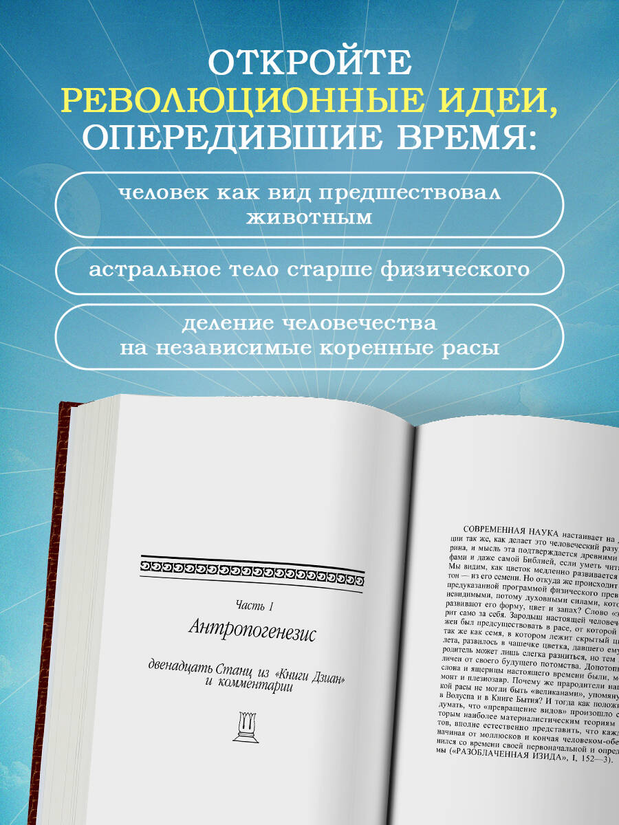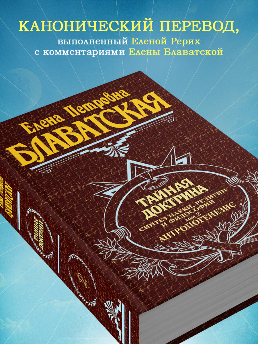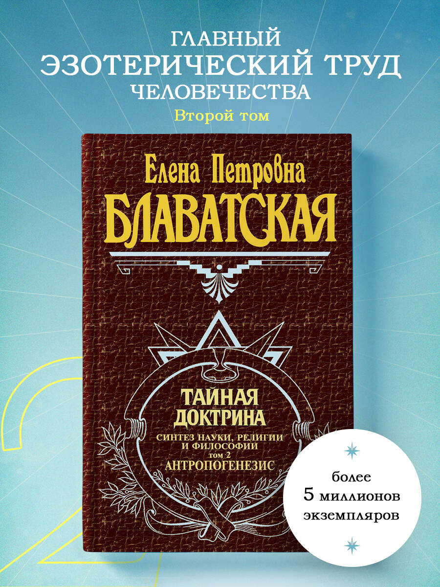 Цитата «Мое Учение - не Мое, но Пославшего Меня». (Евангелие от Иоанна 7:16) О чем Во втором томе рассматривается происхождение и эволюция человека. Выдвигается ряд революционных эзотерических идей, в том числе о делении человечества на независимые расы, о предшествии человека как вида животным, о рождении астрального тела человека ранее физического и др. «Тайная доктрина» - главное сочинение Елены Петровны Блаватской в трех томах. Основу этого произведения составляют тексты, переведенные из сокровенной «Книги Дзиан» с комментариями и пояснениями автора. Также в этом труде подробно рассматривается фундаментальная символика, используемая великими религиями и мифологиями мира, и «делается попытка собрать вместе древнейшие основы и сделать из них одно гармоническое и неразрывное целое». Для кого эта книга Для тех читателей, кого волнуют вопросы самопознания и саморазвития, кто изучает древнюю мудрость и интересуется происхождением философских, эзотерических учений и мировых религий. Об авторе Елена Петровна Блаватская (1831-1891) - религиозный философ, писательница и путешественница, одна из основателей международного Теософского общества. Ее труды переведены на десятки языков. «Тайная доктрина» - одно из основополагающих произведений мировой эзотерики, изданное на русском языке тиражом, превышающим 5 млн экземпляров. Перевод с английского выполнен Еленой Ивановной Рерих (1879-1955) - религиозным философом, писательницей, общественным деятелем, супругой Николая Константиновича Рериха. Ключевые понятия Эзотерика, теософия, древняя мудрость, Рерихи, самопознание, саморазвитие, мифы, происхождение философских и религиозных учений. Особенности оформления книги Твердый переплет.| Издательство | Эксмо |