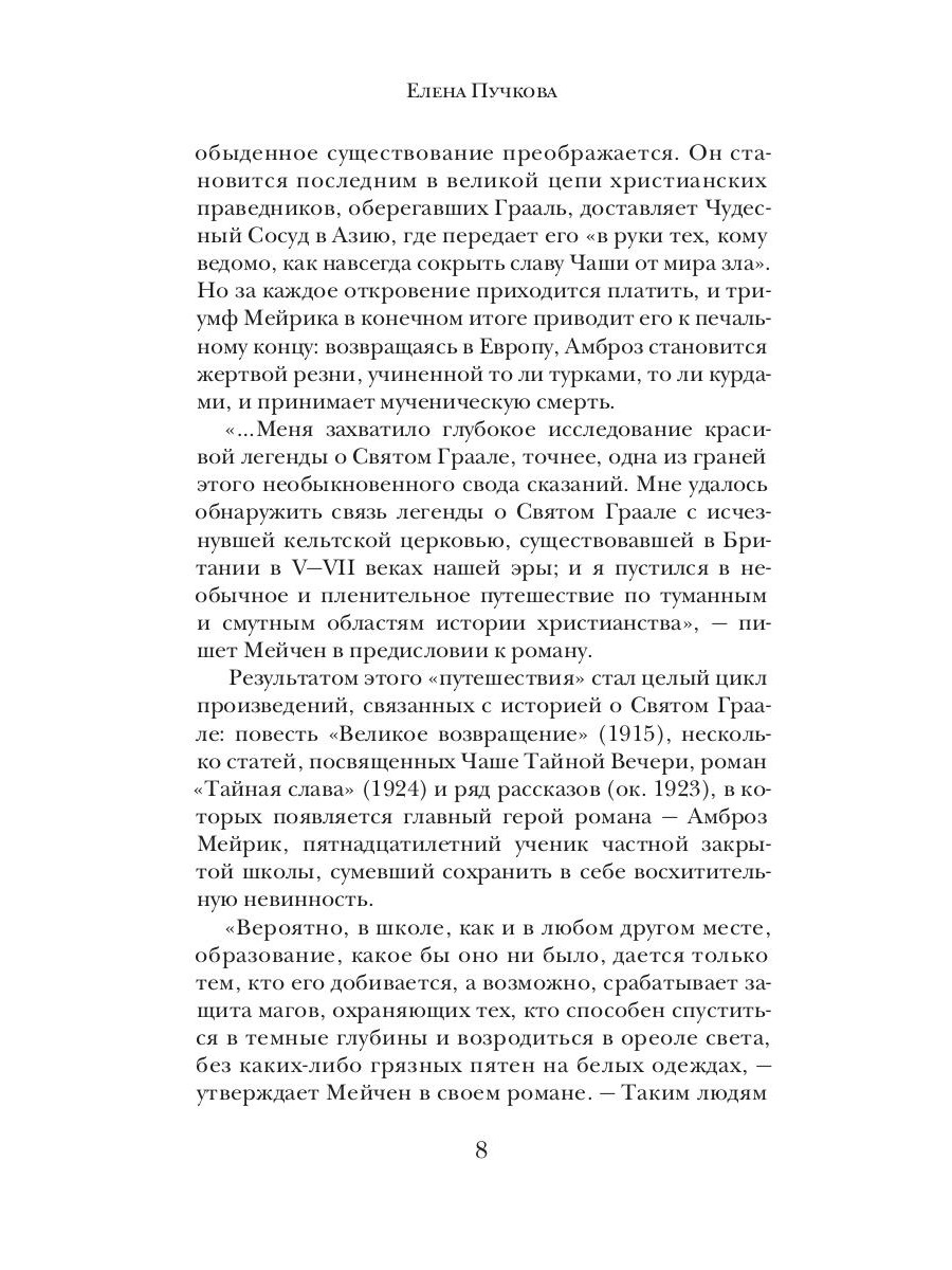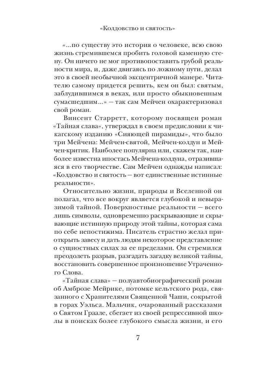 Легендарный автор «страшных историй», исследователь оккультизма, член Ордена Золотой Зари и любимый писатель Лавкрафта - всё это Артур Мейчен, «валлийский маг», родившийся в местах, где, по преданию, стоял легендарный Камелот, а рыцари короля Артура снаряжались на поиски Святого Грааля. В очередной том собрания сочинений, приуроченного к 160-летию великого литератора, вошли его opus magnum «Тайная слава» и «магическая» повесть «Фрагмент жизни». Мейчен всю жизнь был одержим легендой о Чаше Христовой. Об этом свидетельствует цикл произведений, посвященных «духовному поиску» Грааля - идеала и ориентира для нашего современника, почувствовавшего неизбывную тоску по иной, единственно истинной реальности. «Мистер Мейчен… создал воображаемую жизнь редкой красоты, насыщенности, исторической обоснованности. Он впитал древнюю тайну темных лесов и забытых обычаев. Он ощущает и принимает средние века во всей полноте…» Говард Лавкрафт| Издательство | Рипол Классик |