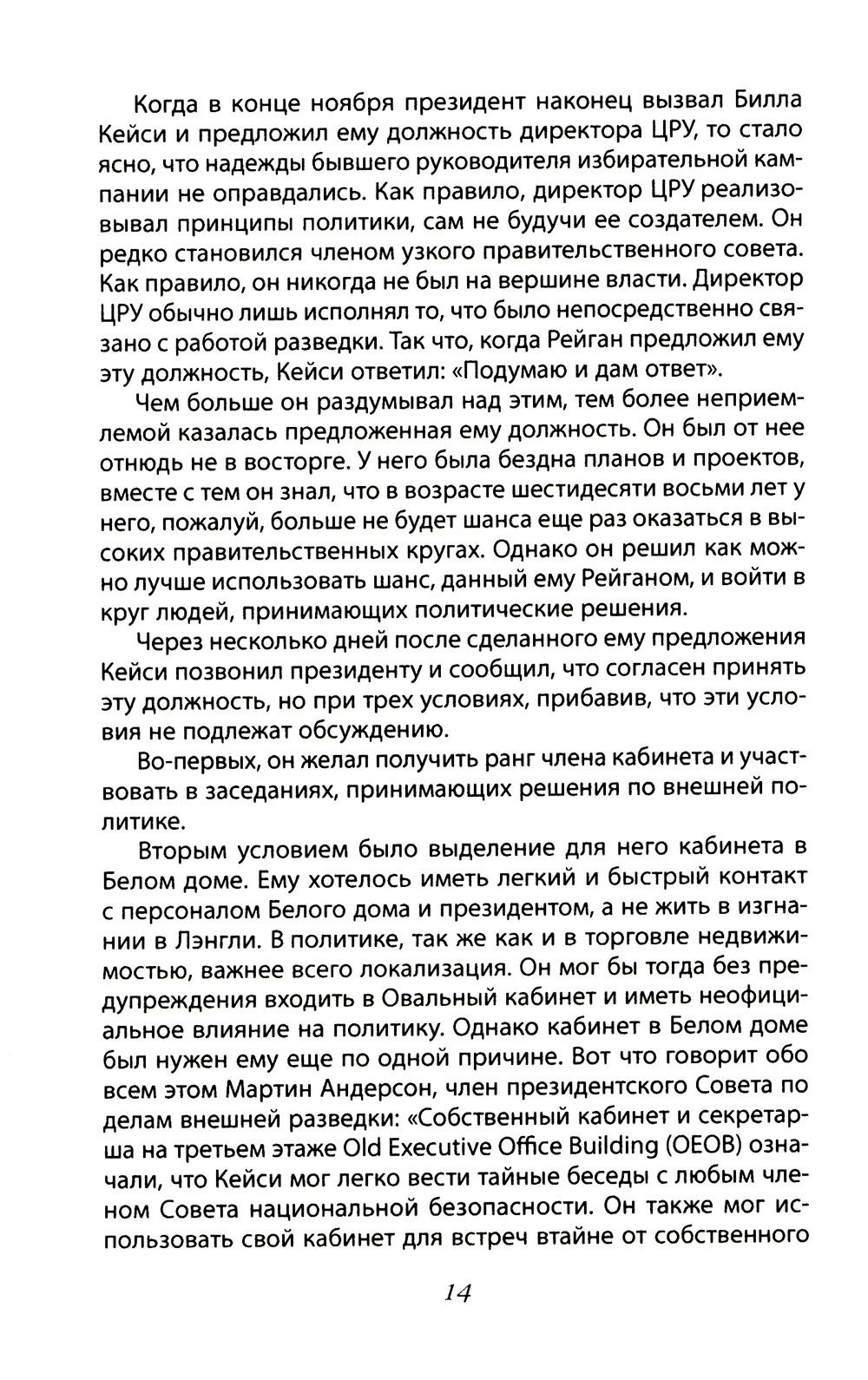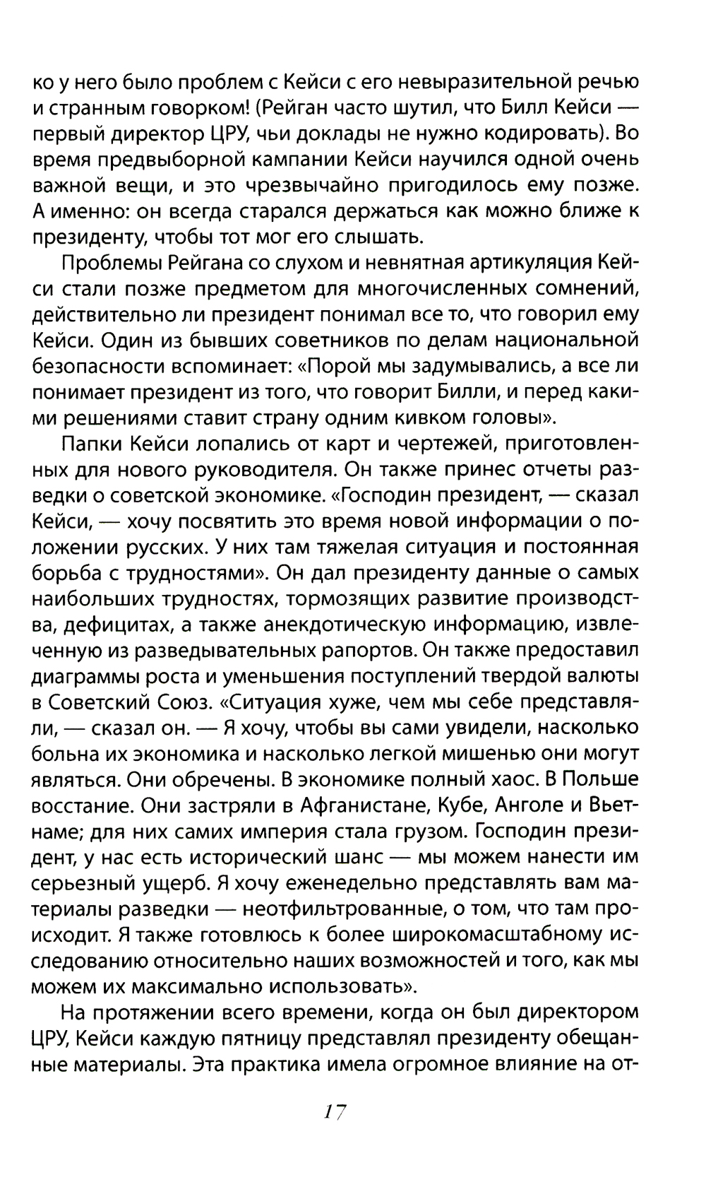 В начале 1982 года президент Рейган вместе с несколькими глав ными советниками разработал стратегию, основанную на атаке на главные, самые слабые места политической и экономической советской системы. Это была сверхтайная операция, проводимая в содействии с союзниками, а также с использованием других средств. Началось стратегическое наступление, имеющее своей целью перенесение центра битвы супердержав в советский блок и даже вглубь самой Страны Советов... Автор данной книги - американский журналист и политический консультант Петер Швейцер раскрывает подробности операции по развалу СССР, а в качестве документального материала приводит эксклюзивные интервью с основными участниками разработки и проведения этой разрушительной политики из администрации Рейгана, а также с официальными лицами из КГБ, Политбюро и правительства СССР. Книга была популярна среди чиновников Госдепа во время администрации президента Дональда Трампа. Представитель Белого дома сказал журналистам: «Не было «секретом», что книга оказала некоторое влияние на политику».| Издательство | Родина |