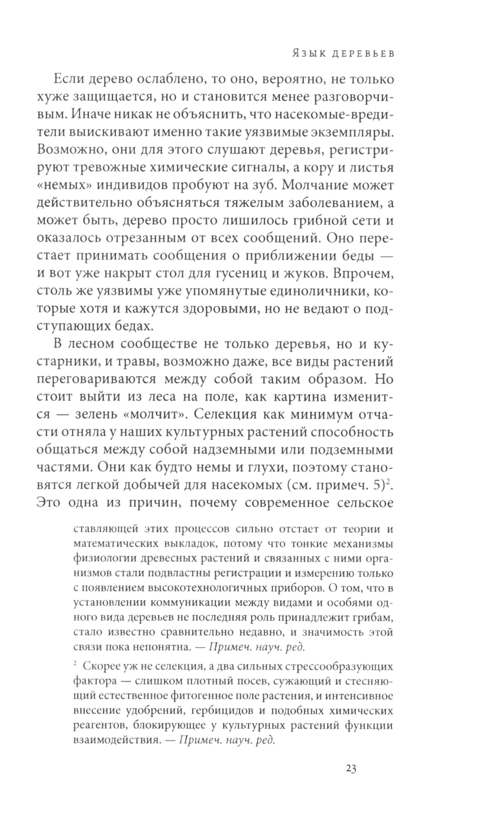 Лес - привычное и обыденное чудо. Поставщик древесины и кислорода, местообитание множества живых организмов, родина сказок и легенд, он кажется таким знакомым и понятным. Однако много ли нам известно о самих деревьях, об их чувствах и взаимоотношениях? Как они общаются между собой и можно ли освоить их язык? Чем отличаются городские деревья от своих лесных родственников? Существует ли связь между деревьями разных поколений? На все эти вопросы просто и доступно отвечает лесник из Западной Германии Петер Вольлебен - специалист с многолетним стажем и автор множества популярных книг о природе. Издание адресовано биологам, экологам и всем тем, кто любит природу. Книга - победитель в номинации «Научно-популярная литература» Немецкой переводческой премии МЕРК 2018.| Издательство | ИД Высшей школы экономики |