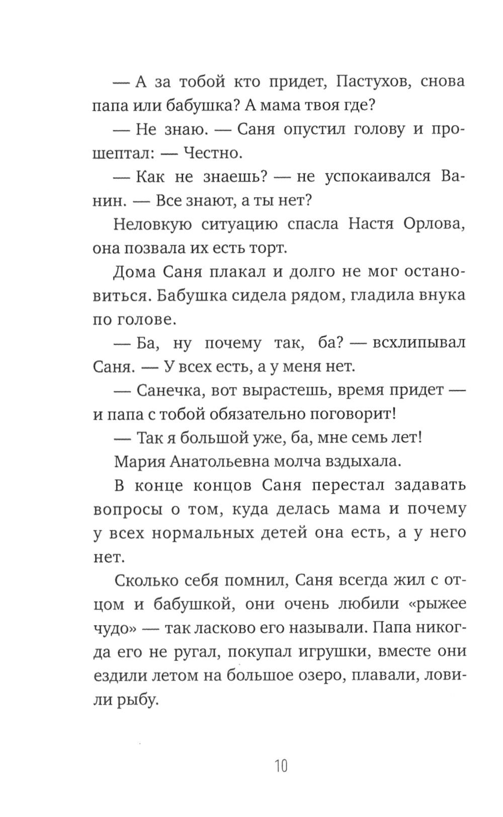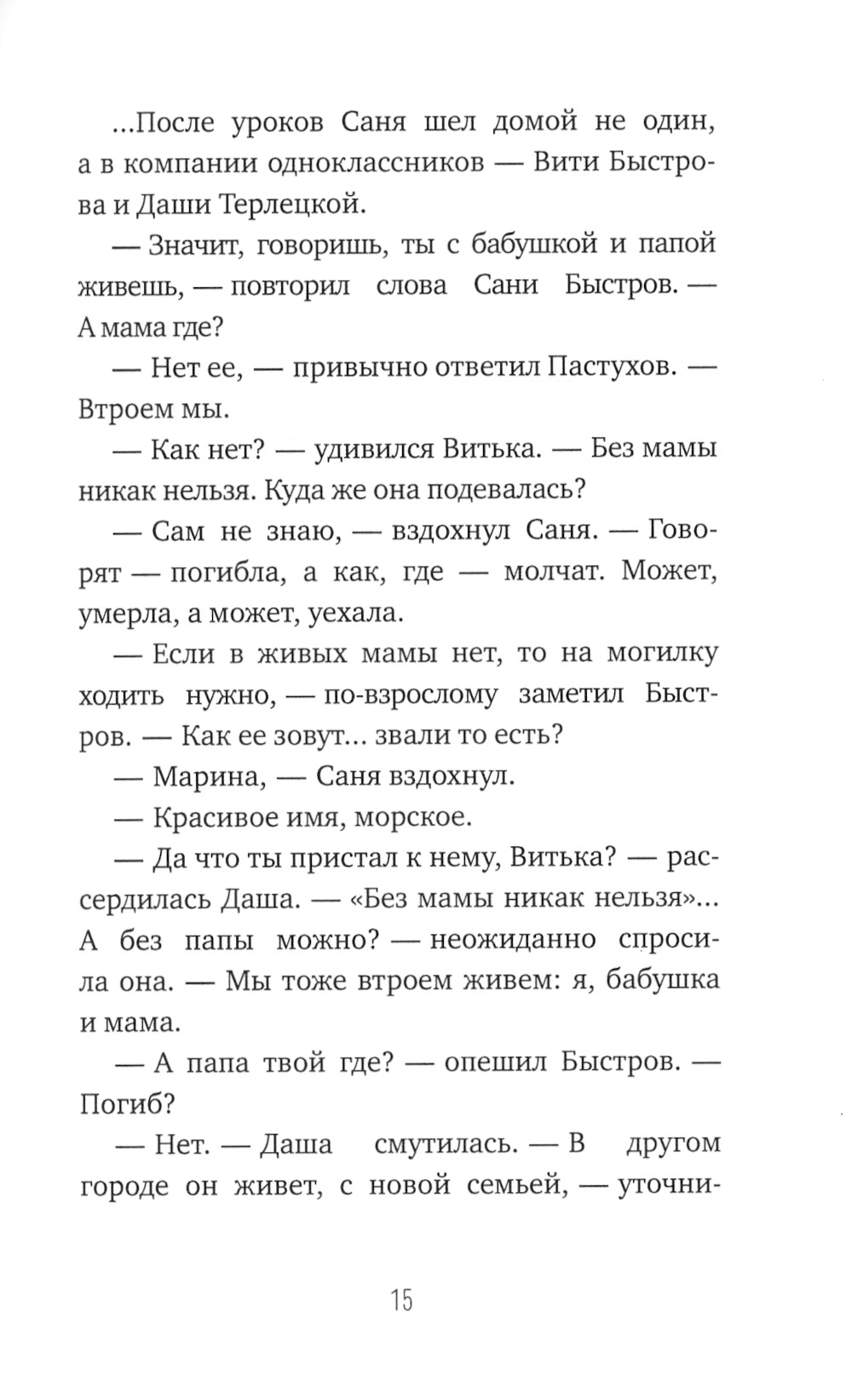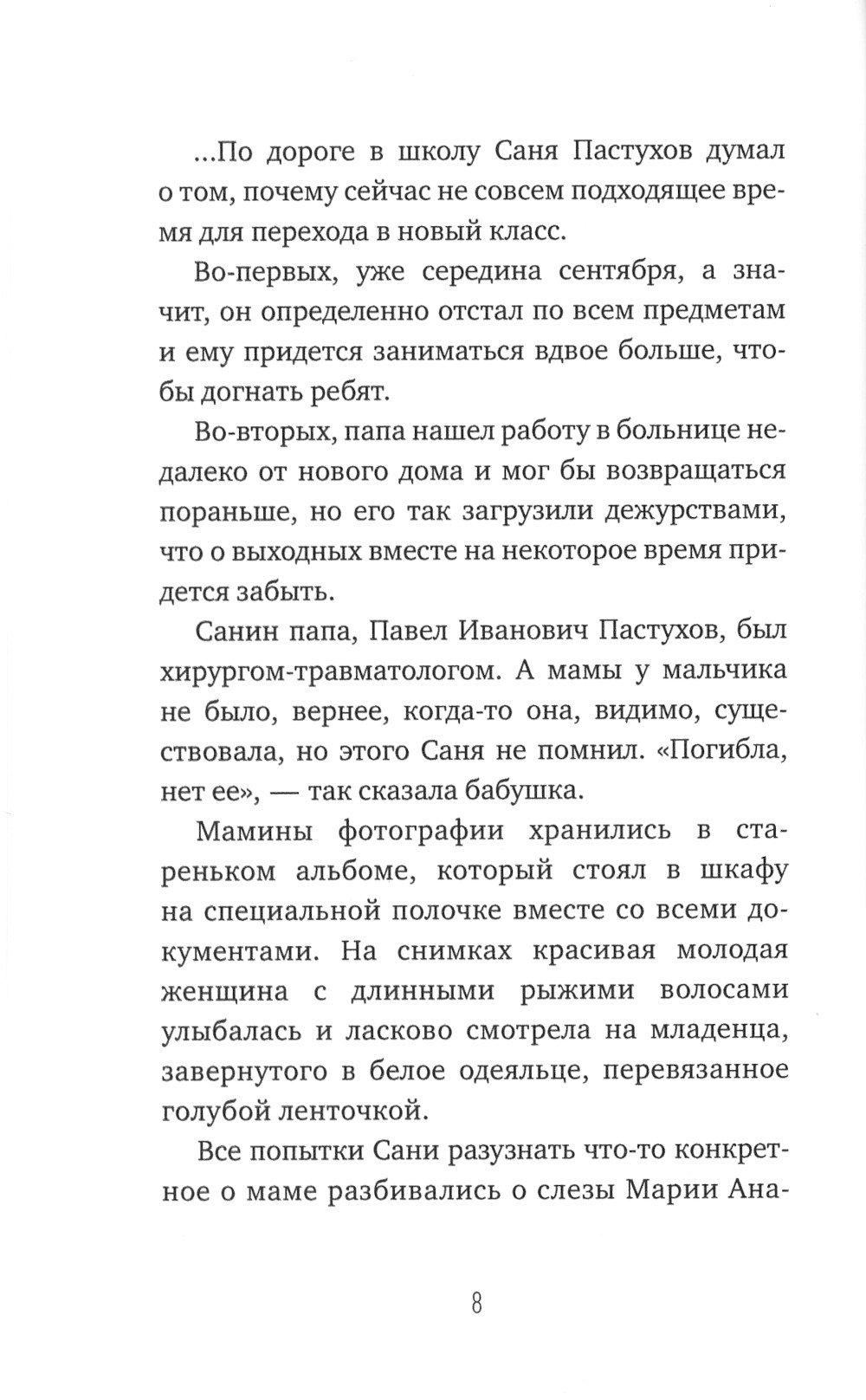 В новой повести Екатерины Тимашпольской главный герой, шестиклассник Саня Пастухов, живет с папой и бабушкой. Мамы у мальчика нет, и никто ему не рассказывает, куда она пропала. В школе, куда Сане пришлось перейти, он знакомится с одноклассниками - Витей Быстровым и Дашей Терлецкой. Вместе они пытаются найти ответы на весьма взрослые вопросы, и, конечно же, в этом им помогают приключения и дружба.| Издательство | Время |