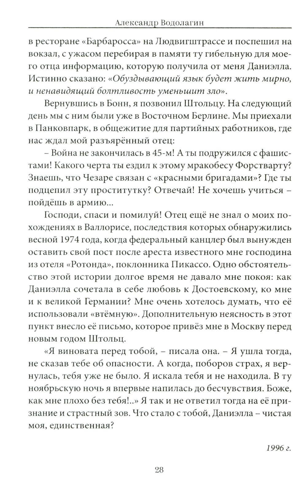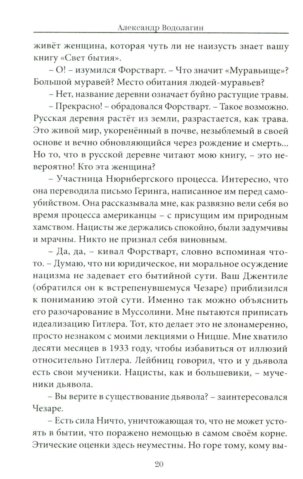 Духовная проза А.В. Водолагина - выражение экзистенциального опыта общения с русскими мистиками-сумасбродами, московскими эзотериками и интеллектуалами, известными политиками, учеными и философами. Основной художественный прием автора - изображение событий духовно-психической жизни мыслящей и страдающей личности, захваченной поиском смысла своего бытия между рождением и смертью, противостоящей абсурду «вечного возвращения того же самого» и ужасу мировой истории. Вошедшие в книгу тексты психологически достоверны и стилистически безупречны. В них - отражение «духовной ситуации времени», воплощение авторской «философии в захватывающих образах».| Издательство | Вече |
