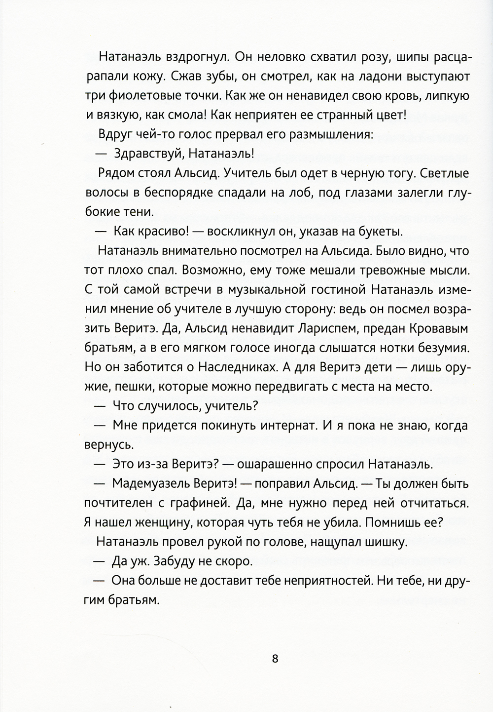 Вторая часть истории, прервавшейся на самом интересном месте! Вот-вот наступит XX век, и от него мир ждёт чудес и всеобщего счастья. Ещё бы: повсюду царит технический прогресс, паровые двигатели разгоняют маховик истории, одно великое открытие следует за другим. Светлое будущее, дивный новый мир - буквально за поворотом! На пороге прекрасной эпохи в городе-государстве Лариспеме происходят события, мало похожие на торжество цивилизации. Сирота Натанаэль, с чьим поразительным умением читатели познакомились в первой книге, из приюта попадает прямиком на человеческий аукцион - где его покупают как будущего лясникама. И кто его «владельцы»? Кармина и Либертэ, две отчаянные девушки, готовые к любым авантюрам. Кармине нужно будет обучить Натанаэля профессии, а Либертэ - доказать свои умения на новой работе в башне Верна. Однако на излёте 1899 года в жизнь троих героев вмешивается неожиданное обстоятельство: Игры века. Им предстоит объединиться не ради победного тура на дирижабле, но ради спасения Лариспема - который окружён врагами и в котором один заговор сменяет другой... Молодая французская писательница Люси Пьерра-Пажо (родилась в 1986 году) с нуля написала альтернативную историю Парижа после победы Коммуны. В итоге у неё получился приключенческий роман в эстетике «Мира Дикого Запада», с интригой в духе Бориса Акунина и Артуро Переса-Реверте, с готической атмосферой а-ля Карлос Руис Сафон - текст, в который погружаешься с головой с первой же страницы. «Читать абсолютно всем!» - сказала об этой трилогии Кристель Дабо, автор серии «Сквозь зеркала», и абсолютно все, включая жюри конкурса дебютантов издательства Gallimard Jeunesse, канал RTL и журнал Telerama, подтвердили: «Тайны Лариспема» - это шедевр!| Издательство | ИД КомпасГид |