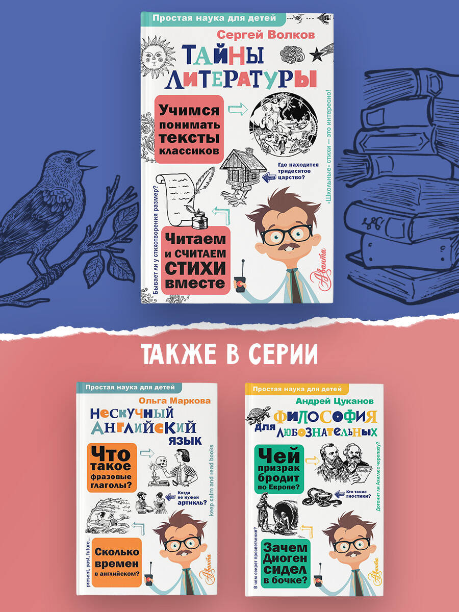 В книге «Тайны литературы» известного учителя русского языка и литературы Сергея Волкова юных читателей ждет по-настоящему увлекательный рассказ о литературе. В сборнике собраны самые разные темы: устное народное творчество (пословицы, поговоркы, скороговорки), сказки ( как народные, так и авторские), исторические экскурсы,"преданья старины глубокой", анализ повестей Николая Гоголя и абсурда в стихотворениях поэтов 20 века и многое-многое другое. Автор научит школьников читать и "считать" стихи, сравнивать произведения разных поэтов, привьет любовь к поэзии. Проверочные задания помогут протестировать себя, понять свои сильные и слабые стороны, решить проблемы, связанные с анализом литературных произведений, а рубрики "Погуглим" и "Книжная полка" - расширить свои знания, научиться лучше понимать прочитанное. Прочитав сборник, невозможно не заинтересоваться литературой и, следовательно, начать по-другому относится к урокам в школе. Книга стопроцентно прививает ребятам любовь к чтению, к русскому фольклору, литературной классике и даже к "школьной" поэзии!| Издательство | ИЗДАТЕЛЬСТВО "АСТ" |