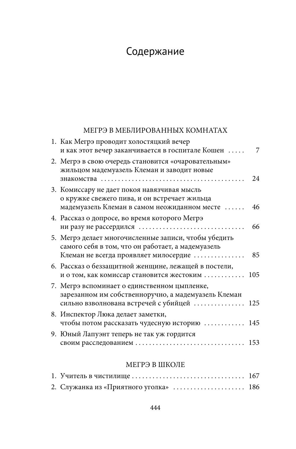 Жорж Сименон писал о комиссаре Мегрэ с 1929 по 1972 год. Роман «Мегрэ в меблированных комнатах» пользовался особой любовью Сименона: «Лично мне он очень нравится. Немного приглушенный, размытый, словно этюд в миноре» (из письма Свену Нильсену, 23 февраля 1951). «Мегрэ в школе» (1954) рассказывает о расследовании, предпринятом комиссаром в небольшой деревне во время отпуска. Убита старуха, которую все ненавидели, но подозрение падает на школьного учителя. Мегрэ приходится иметь дело с крайне ненадежными свидетелями - подростками. «Мегрэ и привидение» (1964) повествует о стремительном и захватывающем расследовании преступления в мире искусства, нити которого ведут из Парижа в Ниццу и Лондон.| Издательство | Феникс |