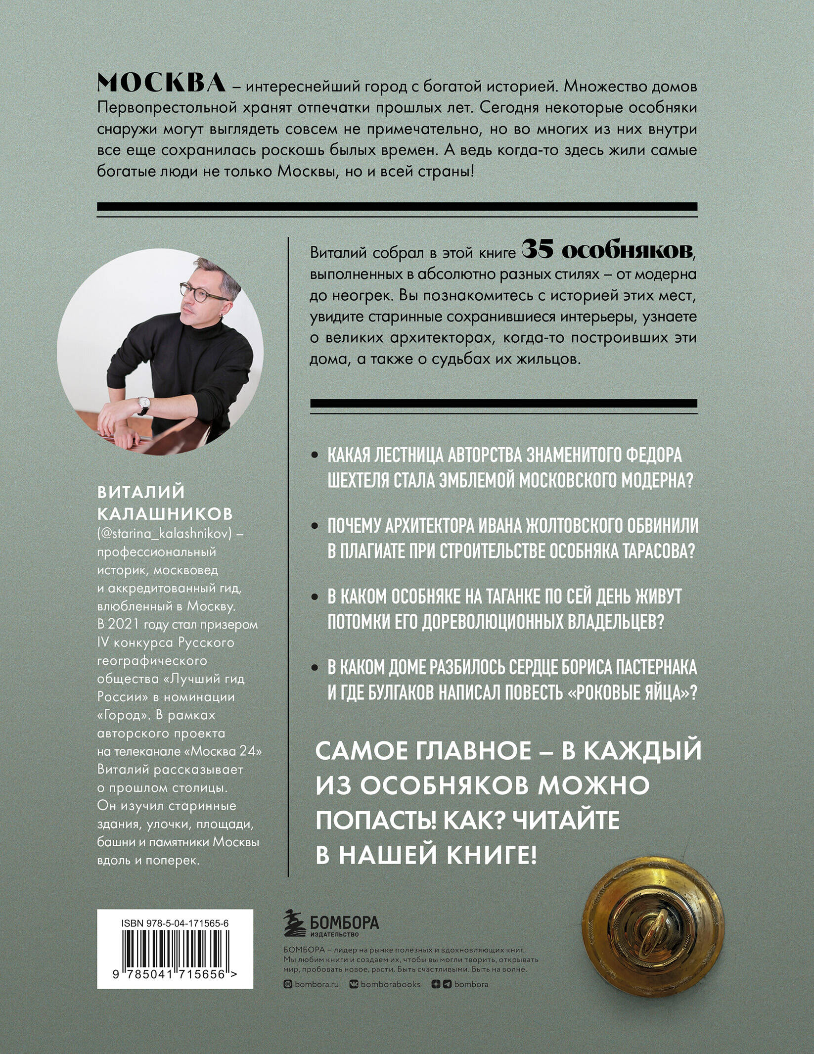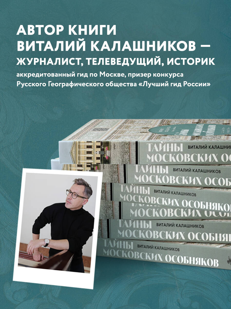 Автор книги Виталий Калашников (starina_kalashnikov) - профессиональный историк, журналист канала «Москва24», москвовед и аккредитованный гид, влюбленный в столицу. В 2021 году он стал призером IV конкурса Русского Географического общества «Лучший гид России» в номинации «Город». В книге Виталий рассказывает о тридцати пяти московских особняках, в которые можно попасть любому желающему! Вы познакомитесь с историей этих мест, увидите старинные сохранившиеся интерьеры, узнаете о великих архитекторах, когда-то построивших эти дома, а также о судьбах их жильцов. • Какая лестница авторства знаменитого Федора Шехтеля стала эмблемой московского модерна? • В каком особняке на Таганке по сей день живут потомки его дореволюционных владельцев? • Почему архитектора Ивана Жолтовского обвинили в плагиате при строительстве особняка Тарасова? • В каком доме разбилось сердце Бориса Пастернака и где Булгаков написал повесть «Роковые яйца»? • Какие интерьеры скрываются за строительными лесами особняка Елагина? • В каком особняке находится музей Л.Н. Толстого и почему сам писатель никогда там не бывал? Скорее открывайте книгу и путешествуйте вместе с ней по стилям и эпохам!| Издательство | ООО "Издательство "Эксмо" |