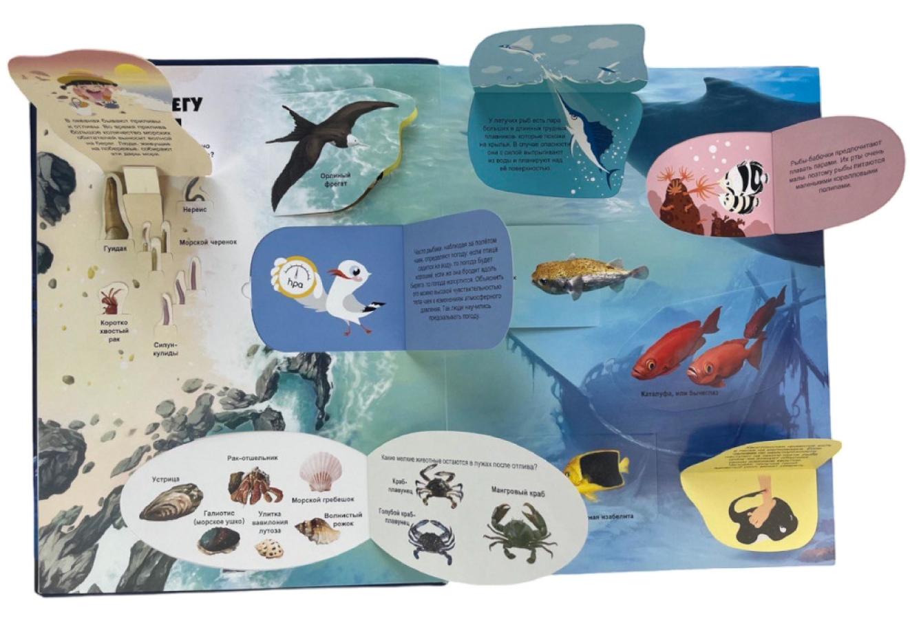 С уникальной 3D-книгой «Тайны подводного мира» можно погрузиться в морскую пучину. На каждом развороте - удивительные морские обитатели! Одни из них выглядывают на поверхность, другие скрываются на самом дне. Но каждый из них готов рассказать тебе свою историю. Посмотри: они двигаются, дышат, плывут к тебе на встречу! НАЙДИ ИХ! Жители морского побережья мечтают познакомиться с тобой. Загадки и правила их жизни теперь не секрет для тебя! Открывай окошки и читай!
