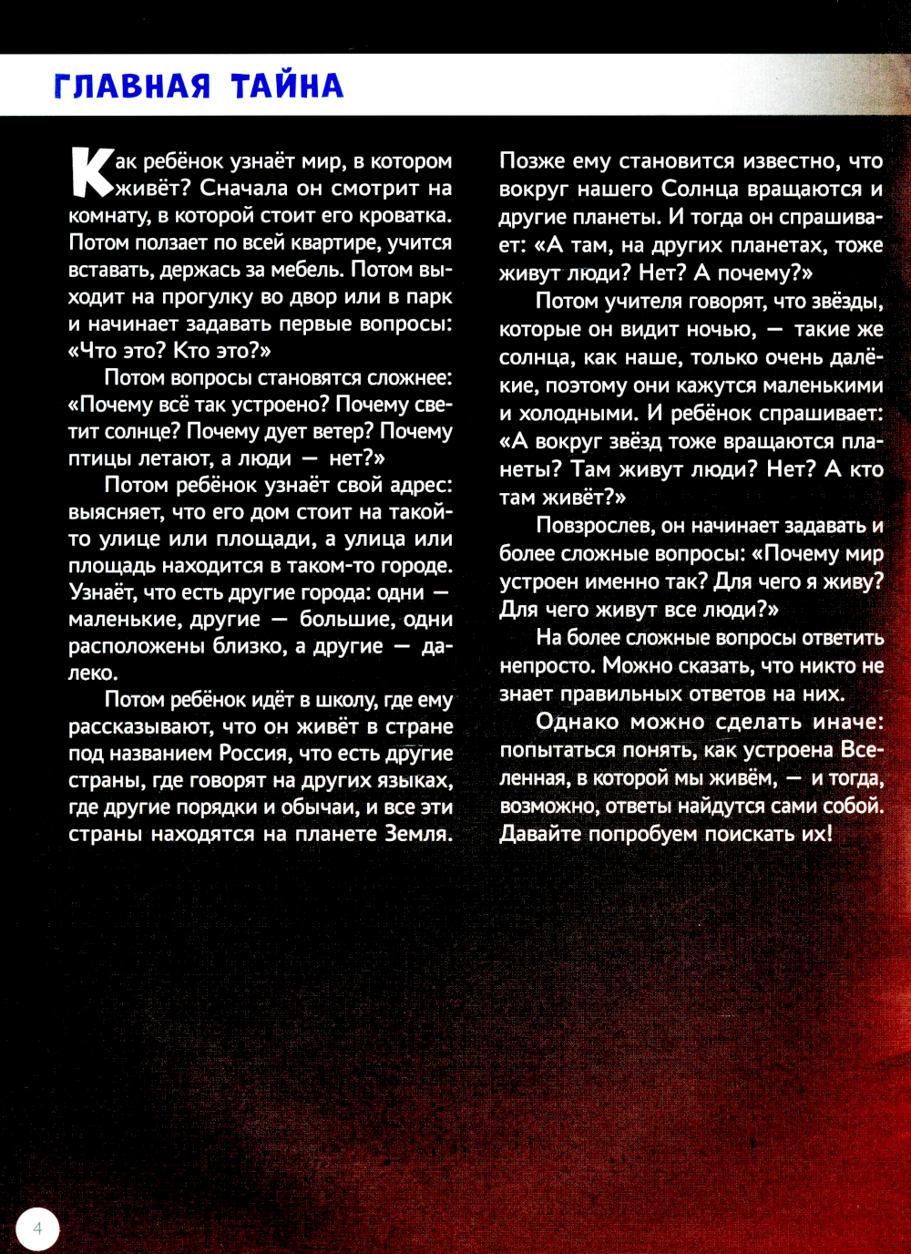 Не секрет, что безграничное пространство космоса полно необъяснимых тайн и нерешённых загадок, которые веками продолжают будоражить умы учёных и писателей-фантастов. От чёрных дыр до мультивселенной - та истина, что кроется за этими тайнами, может оказаться куда причудливее самых смелых гипотез и самых невероятных фантазий. Давай отправимся вместе в удивительное путешествие по наблюдаемой Вселенной... и далеко за её пределы. Полюбуемся рождением звёзд и появлением первой жизни в Галактике. Нырнём в «кротовые норы» и «белые дыры». Попробуем разобраться, можно ли попасть в прошлое и что ждёт Вселенную в будущем. Пристегнись, юный друг, мы начинаем. Звёзды зовут!