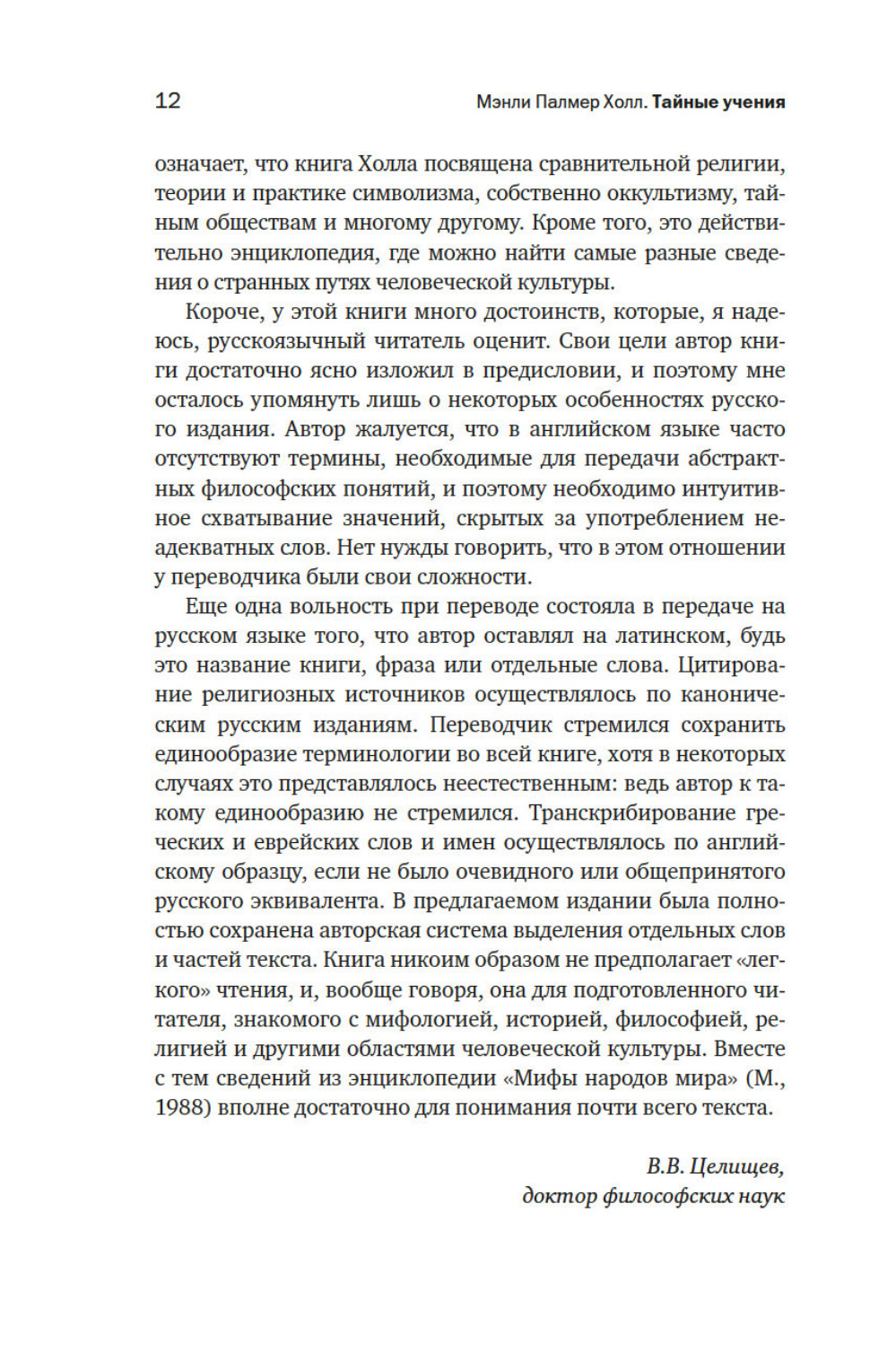 В начале XX века молодой писатель и философ-мистик Мэнли П. Холл опубликовал обширную энциклопедию оккультизма, полагая, что современные идеи прогресса и материализма вытесняют более важные и древние способы познания. Текст Холла стал классической книгой, поражающей своей широтой: в различных главах рассматриваются розенкрейцерство, каббала, алхимия, криптология, Таро. Начиная свой рассказ с древнейших культов и мистерий, Холл проводит читателя через документальную историю эзотерических текстов Средних веков, каббалистических загадок, мифических существ и оккультных представлений вплоть до эпохи Возрождения. «Книга посвящена обсуждению скрытого эмблемами, аллегориями, ритуалами тайного знания древних. Это знание сохранялось небольшой группой посвященных умов, начиная с момента сотворения мира. Уходя, эти просвещенные философы оставляли свои формулы другим, чтобы те могли достичь понимания. Но даже если эти секреты попадали в руки невежд, великая тайна оставалась скрытой в символах или аллегориях. И тот, кто сможет сегодня найти утерянные ключи к ней, откроет сокровищницу философских, научных и религиозных истин». (Мэнли П. Холл)| Издательство | КоЛибри |