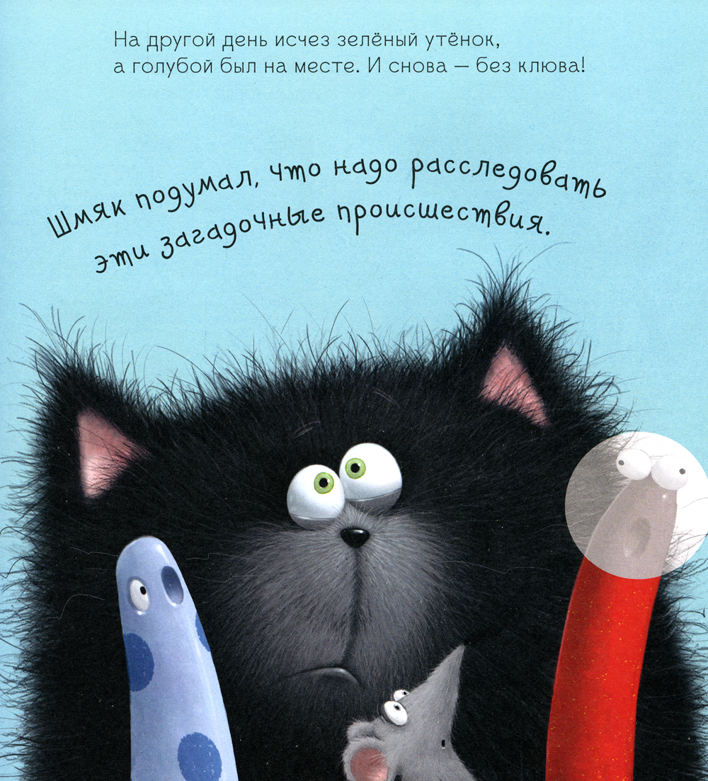 В доме у Шмяка происходят необъяснимые вещи - кто-то нагло ворует из-под носа у котёнка игрушечных утят из его коллекции. Необходимо срочно расследовать исчезновение. За дело берутся тайный агент Шмяк и его помощник - «агент С». Кто же этот таинственный похититель? И зачем ему понадобились утята?| Издательство | Клевер-Медиа-Групп |