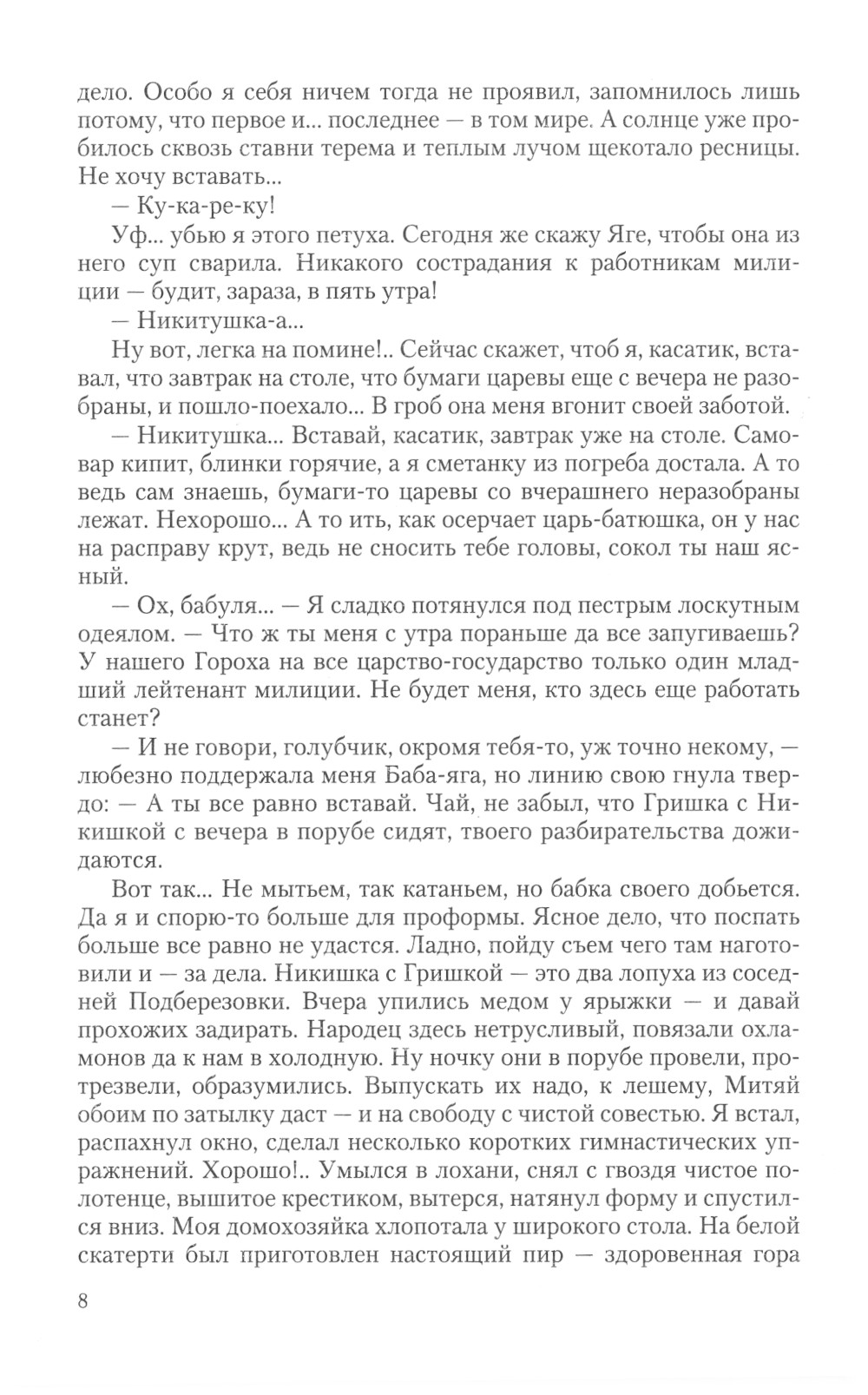 Спецслужбы были и будут всегда! Яркие будни сотрудников 1-го милицейского управления г. Лукошкино ежедневно разнообразят всякого рода чернокнижники, бояре-ворюги, Кощей Бессмертный, не к ночи будь помянут. На пути сказочных безобразий неприступной стеной встают младший лейтенант милиции Никита Иванович Ивашов, рядовой Митька и эксперт-криминалист Баба-яга. В Лукошкино - стольный град царя Гороха - бывший участковый Н. И. Ивашов попал по разнарядке неведомых сил из Москвы и вот уже четыре повести подряд успешно распутывает сложные дела, изгоняет супостатов, спасает царевен и обхитряет хитрецов.| Издательство | Альфа-книга |