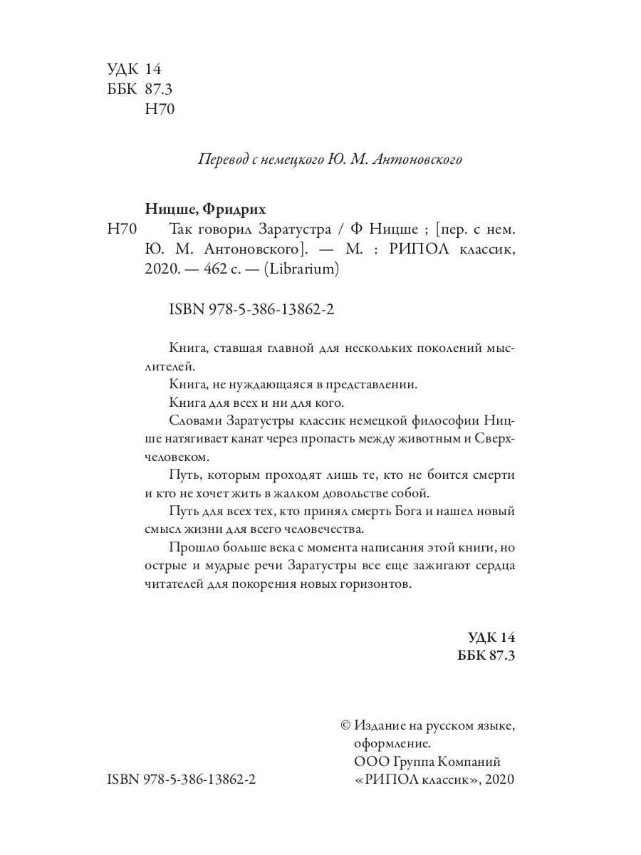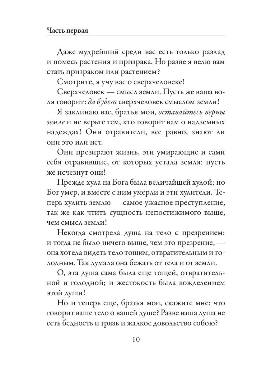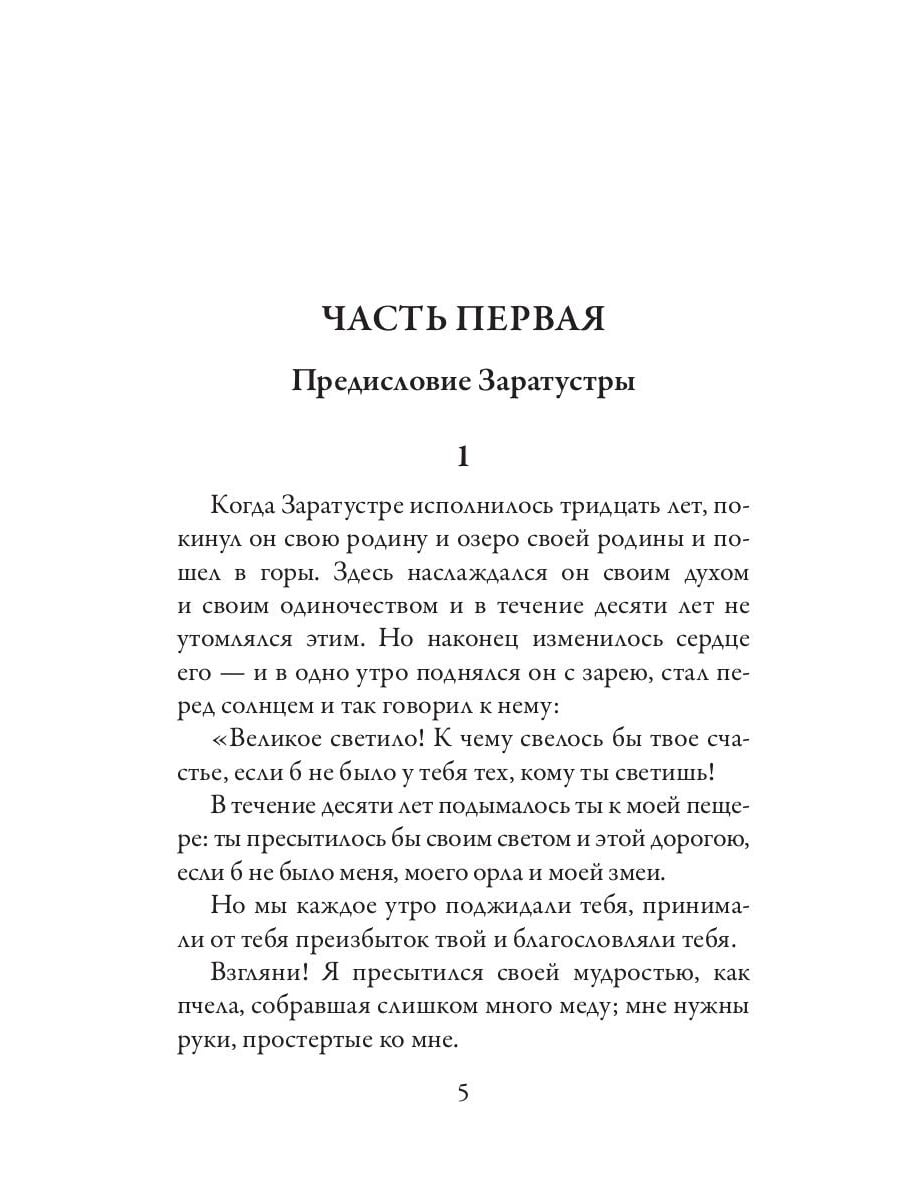 Прошло больше века с момента написания этой книги, но острые и мудрые речи Заратустры все еще зажигают сердца читателей для покорения новых горизонтов.