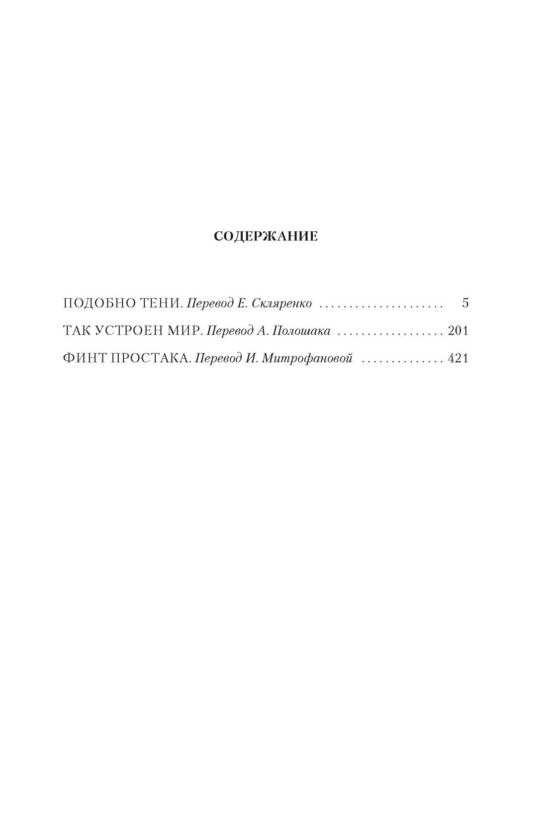 Рене Реймонд, известный всему миру под псевдонимом Джеймс Хэдли Чейз, прославился в жанре «крутого» детектива. Он вышел из семьи отставного британского офицера, и отец прочил Рене карьеру ученого. Но в 18 лет будущий писатель оставил учебу и навсегда покинул родительский дом. Постоянно менял работу и испробовал немало профессий, прежде чем стал агентом-распространителем книг, основательно изучив книжный бизнес изнутри. Впоследствии он с иронией вспоминал: «…Пришлось постучать не менее чем в сто тысяч дверей, и за каждой из них мог встретить любого из персонажей своих будущих романов… И столько пришлось мокнуть под дождем, что сейчас никто не в силах заставить меня выйти из дома в сырую погоду…» В течение почти полувековой писательской деятельности Чейз создал порядка девяноста романов, которые пользовались неизменным успехом у читателей разных стран, и около пятидесяти из них были экранизированы. В настоящем издании представлены произведения, написанные в 1940-1950 гг.: «Подобно тени», «Так устроен мир», «Финт простака».