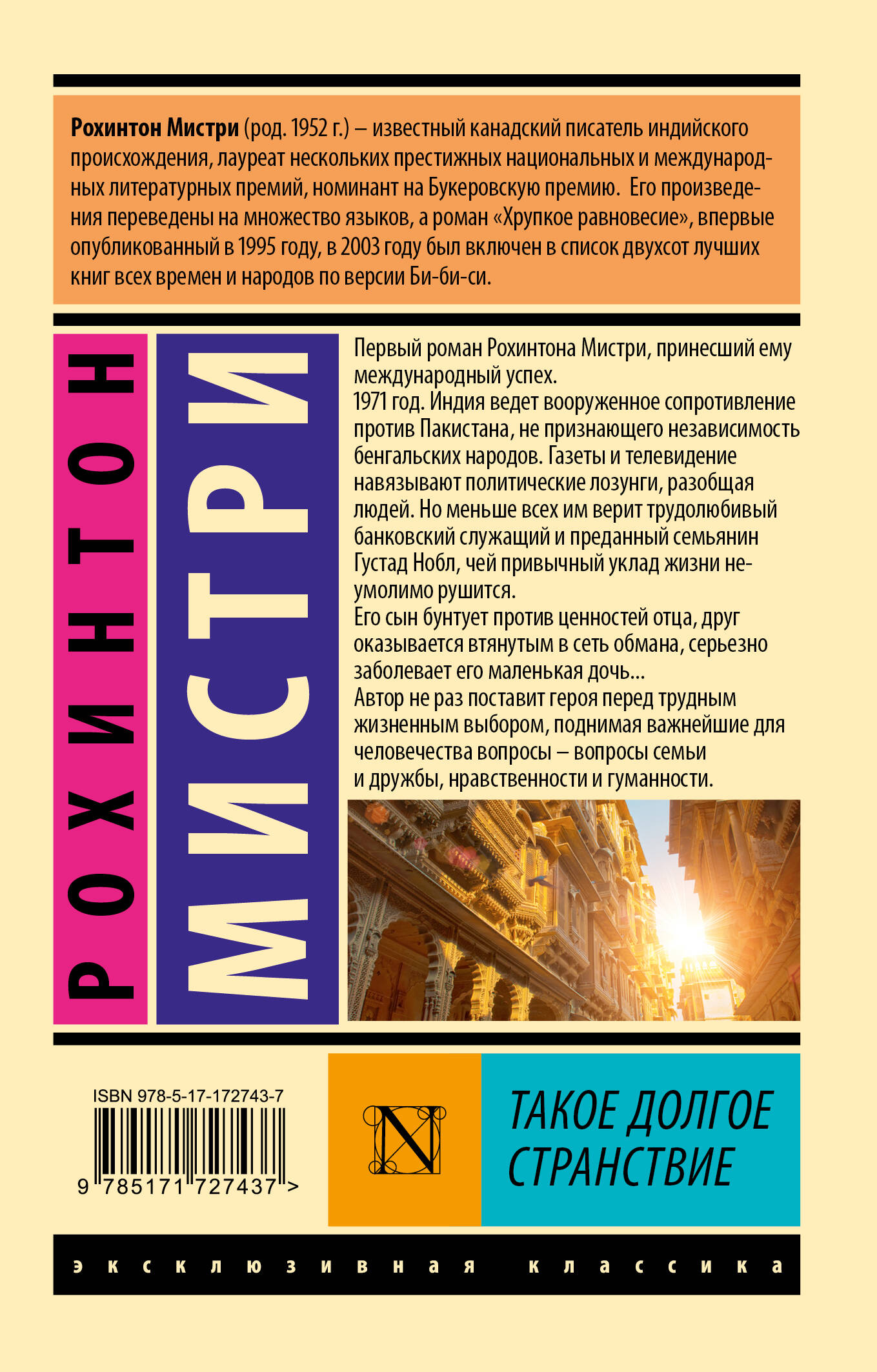 Первый роман Рохинтона Мистри, принесший ему международный успех. 1971 год. Индия ведет вооруженное сопротивление против Пакистана, не признающего независимость бенгальских народов. Газеты и телевидение навязывают политические лозунги, разобщая людей. Но меньше всех им верит трудолюбивый банковский служащий и преданный семьянин Густад Нобл, чей привычный уклад жизни неумолимо рушится. Его сын бунтует против ценностей отца, друг оказывается втянутым в сеть обмана, серьезно заболевает его маленькая дочь... Автор не раз поставит героя перед трудным жизненным выбором, поднимая важнейшие для человечества вопросы - вопросы семьи и дружбы, нравственности и гуманности.| Издательство | Издательство "АСТ" |