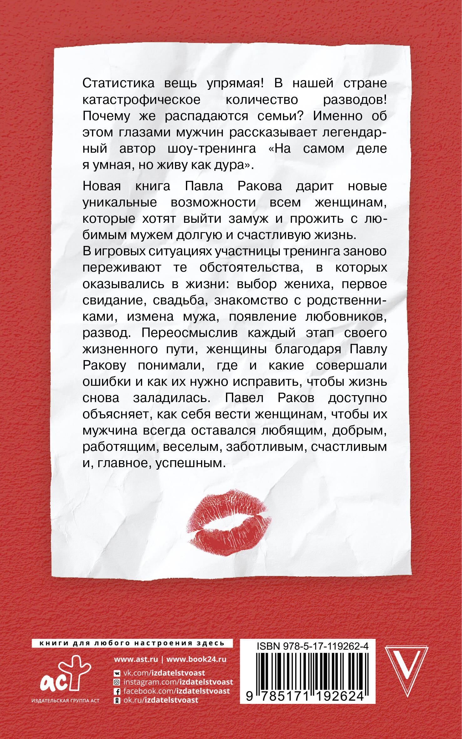 Новая книга Павла Ракова дарит новые уникальные возможности всем женщинам, которые хотят выйти замуж и прожить с любимым мужем долгую и счастливую жизнь. В игровых ситуациях участницы тренинга заново переживают те обстоятельства, в которых оказывались в жизни: выбор жениха, первое свидание, свадьба, знакомство с родственниками, измена мужа, появление любовников, развод.| Издательство | ИЗДАТЕЛЬСТВО "АСТ" |
