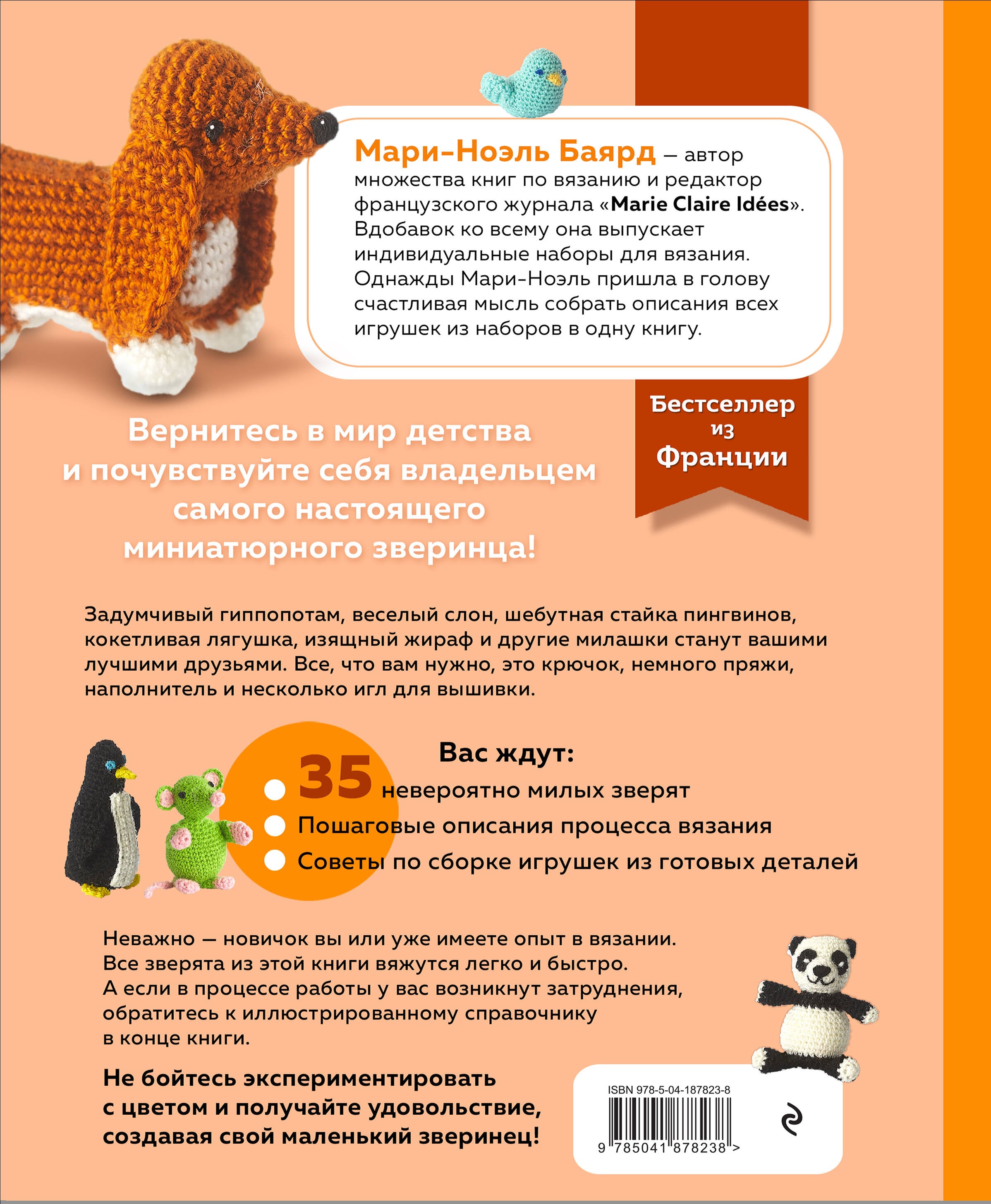 35 обаятельных зверят крючком от редактора французского журнала Marie Claire Idées. По узкой Парижской улочке семенит ножками маленькая такса. Куда она держит путь? Наверняка к своим друзьям - задумчивому гиппопотаму, веселому слону, шебутной стайке пингвинов, кокетливой лягушке и другим милашкам. Тоже хотите с ними подружиться? Тогда вперед! Мари-Ноэль Баярд, автор множества книг по вязанию, предлагает вам создать 35 невероятно милых зверят. Неважно - новичок вы или уже имеете опыт в вязании. Все зверята из этой книги вяжутся легко и быстро. Все, что вам нужно, это крючок, немного пряжи, наполнитель и несколько игл для вышивки. Вас ждут: • 35 невероятно милых зверят. • Пошаговые описания процесса вязания. • Советы по сборке игрушек из готовых деталей. Не бойтесь экспериментировать с цветом и получайте удовольствие, создавая свой маленький зверинец!| Издательство | ООО "Издательство "Эксмо" |