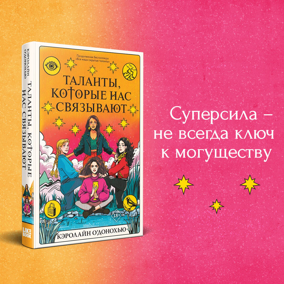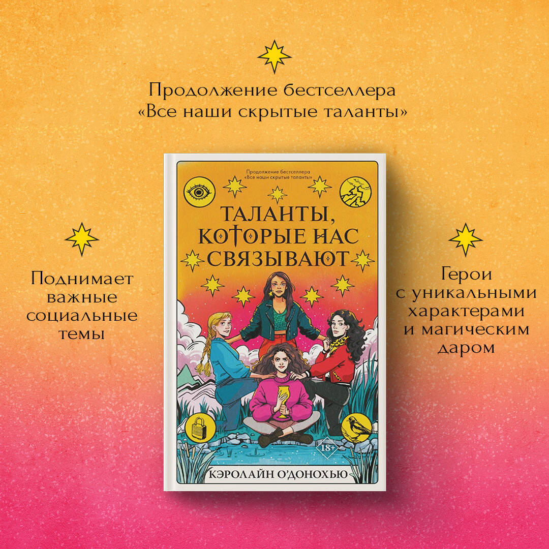 «Таланты, которые нас связывают» - долгожданное продолжение мирового бестселлера «Все наши скрытые таланты». Совершенно очаровательная, захватывающая, наполненная магией история о девушке, открывшей в себе талант гадать на картах Таро. Многое изменилось с тех пор, как Мэйв при помощи карт Таро разыскала пропавшую подругу. После посещения мира Домохозяйки у всех ее друзей раскрылись магические способности, которые они стали использовать, не думая о последствиях. Ро может взламывать замки, Лили управлять электричеством, Фиона залечивать любые раны. А сама Мэйв обнаруживает, что умеет читать мысли других людей. Вскоре в школе начинают происходить загадочные события, а в город возвращается опасная религиозная секта. И тогда четверо друзей понимают: игра с магией зашла слишком далеко. Для фанатов «Ходячего замка», «Очень странных вещей» и «Леденящих душу приключений Сабрины». «Совершенно очаровательная книга, в которой волшебство становится таким понятным». - Мелинда Солсбери, автор романа «Дочь пожирательницы грехов» Об авторе Кэролин О'Донохью - ирландская писательница, автор бестселлеров The New York Times, журналистка и ведущая подкастов. После публикации дебютного романа «Promising Young Women» в 2018 году Кэролин была номинирована на премию Irish Book Awards и Kate O'Brien Award.| Издательство | ООО "Издательство "Эксмо" |