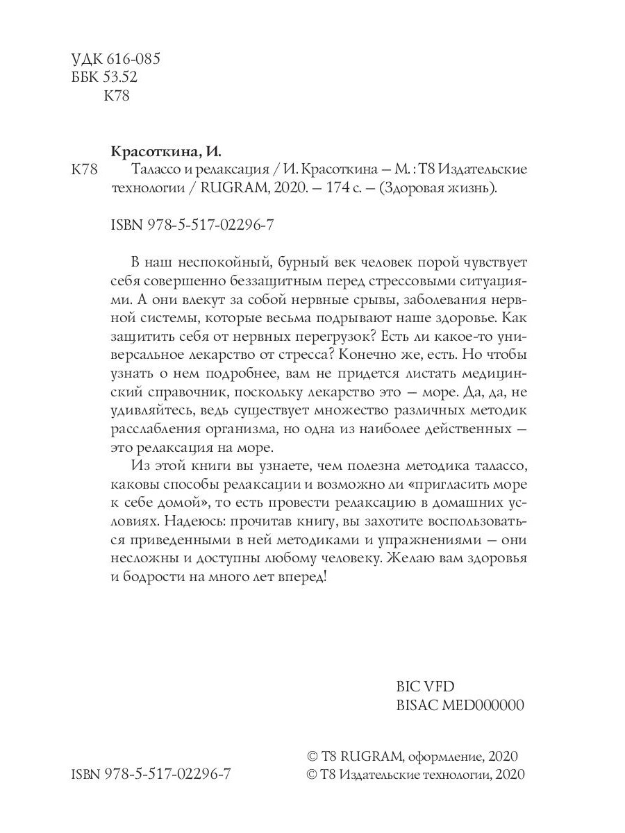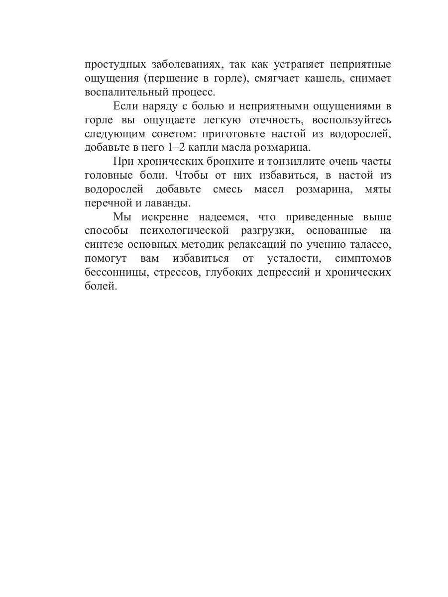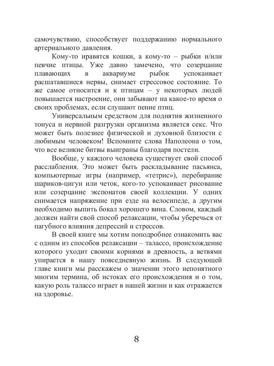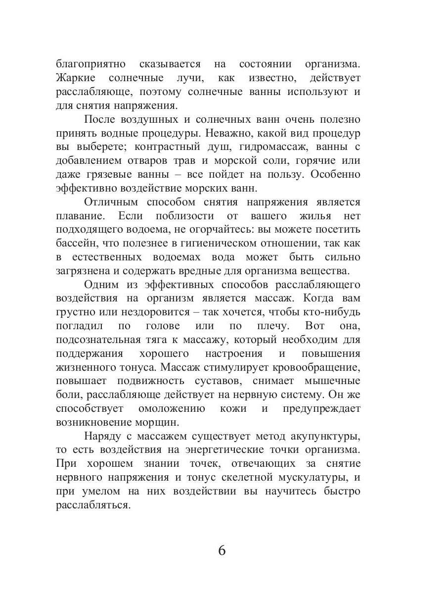 В наш неспокойный, бурный век человек порой чувствует себя совершенно беззащитным перед стрессовыми ситуациями. А они влекут за собой нервные срывы, заболевания нервной системы, которые весьма подрывают наше здоровье. Как защитить себя от нервных перегрузок? Есть ли какое-то универсальное лекарство от стресса? Конечно же, есть. Но чтобы узнать о нем подробнее, вам не придется листать медицинский справочник, поскольку лекарство это - море. Да, да, не удивляйтесь, ведь существует множество различных методик расслабления организма, но одна из наиболее действенных - это релаксация на море. Из этой книги вы узнаете, чем полезна методика талассо, каковы способы релаксации и возможно ли «пригласить море к себе домой», то есть провести релаксацию в домашних условиях. Надеюсь: прочитав книгу, вы захотите воспользоваться приведенными в ней методиками и упражнениями - они несложны и доступны любому человеку. Желаю вам здоровья и бодрости на много лет вперед!