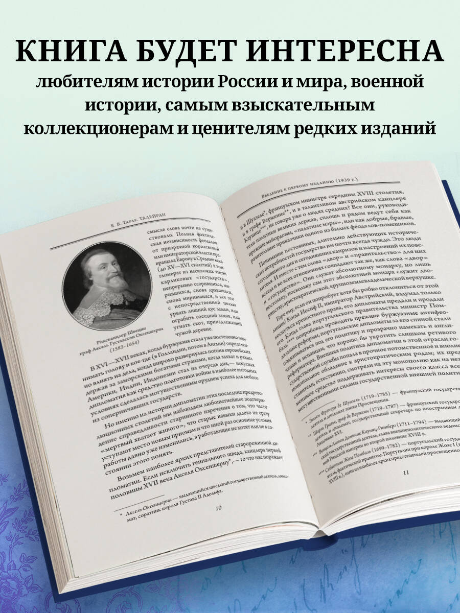 Это коллекционное издание продолжает собрание сочинений известного советского историка, академика Евгения Викторовича Тарле (1874-1955). Блестящий педагог, он обладал незаурядным для ученого литературным талантом, оставаясь при этом авторитетнейшим специалистом в российской исторической науке, всецело преданным исторической правде. Популяризаторский стиль, живой язык и повествовательный динамизм в сочетании со строгим, педантичным следованием фактам ставят его работы в один ряд с трудами великого Н. М. Карамзина, В. О. Ключевского, Н. И. Костомарова. В шестом томе собрания сочинений представлен труд «Талейран», в котором Тарле исследует жизнь и карьеру одного из самых выдающихся и противоречивых дипломатов Европы, сумевшего, ловко приспосабливаясь к смене политических режимов в неспокойной Франции рубежа XVIII-XIX веков, удержаться на самой вершине власти не одно десятилетие. Эта работа дополнена в издании статьями и лекциями Тарле, в которых раскрываются тонкости европейской дипломатии того же периода. Серия «Подарочные издания. Тарле Е.В. Юбилейное собрание сочинений» - это эксклюзивная книжная коллекция, приуроченная к 150-летию со дня рождения знаменитого советского историка Евгения Викторовича Тарле. В серию вошли ключевые труды академика Е. В. Тарле: «Наполеон», «Нашествие Наполеона на Россию», «Крымская война» - эти и другие работы, представленные в серии, были и остаются блестящими образцами русской исторической мысли. Собрание сочинений станет украшением библиотеки самого взыскательного коллекционера и любителя редких изданий.| Издательство | ООО "Издательство "Эксмо" |