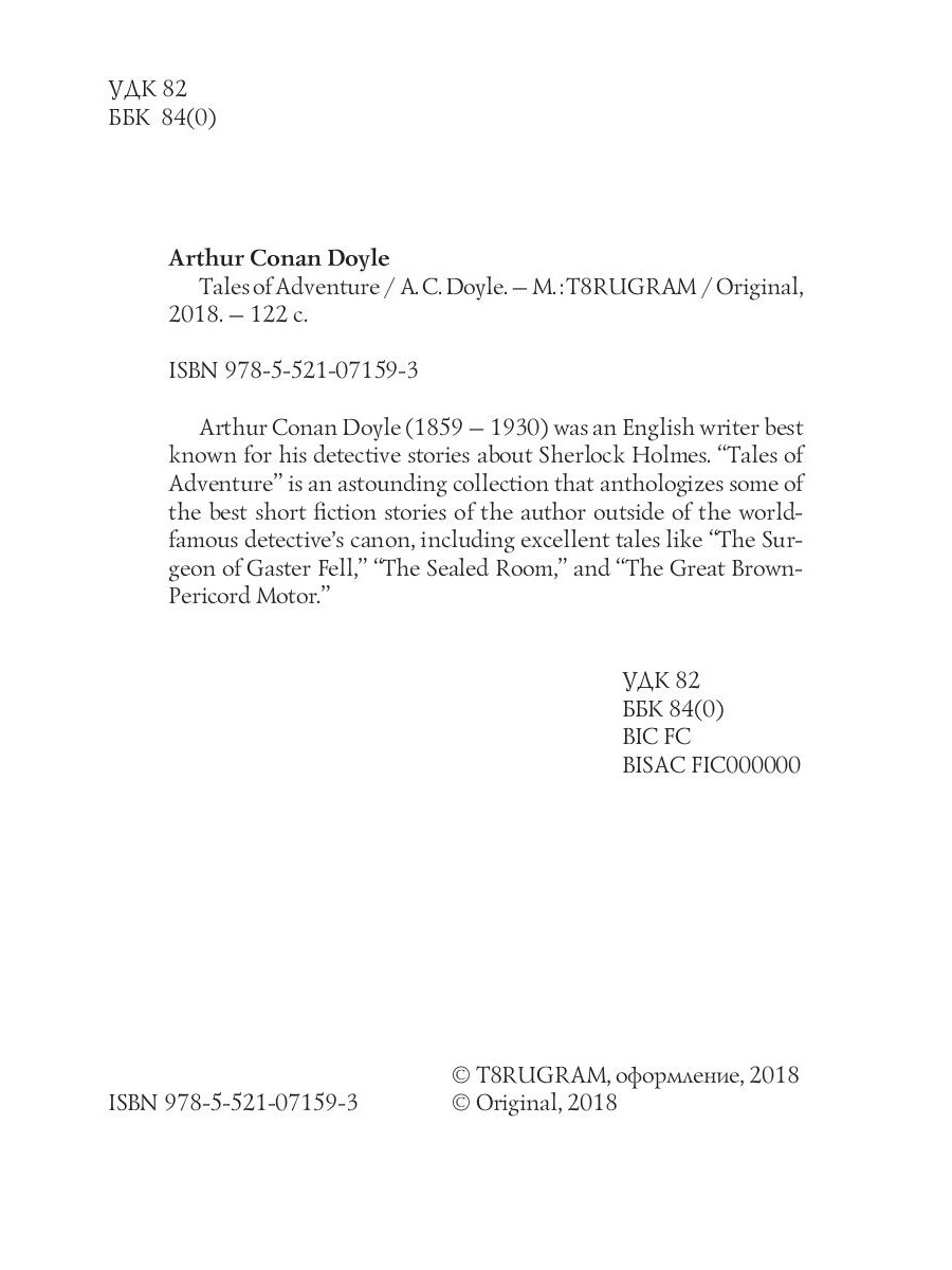 Arthur Conan Doyle (1859-1930) was an English writer best known for his detective stories about Sherlock Holmes. "Tales of Adventure" is an astounding collection that anthologizes some of the best short fiction stories of the author outside of the world-famous detective's canon, including excellent tales like "The Surgeon of Gaster Fell", "The Sealed Room" and "The Great Brown-Pericord Motor."