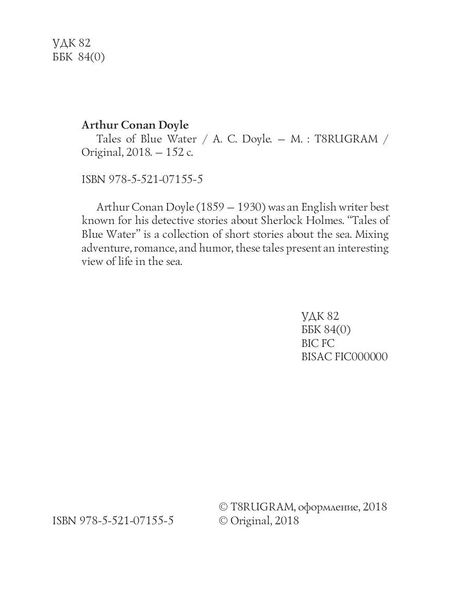 Arthur Conan Doyle (1859 - 1930) was an English writer best known for his detective stories about Sherlock Holmes. "Tales of Blue Water" is a collection of short stories about the sea. Mixing adventure, romance, and humor, these tales present an interesting view of life in the sea.| Издательство | Т8 RUGRAM |