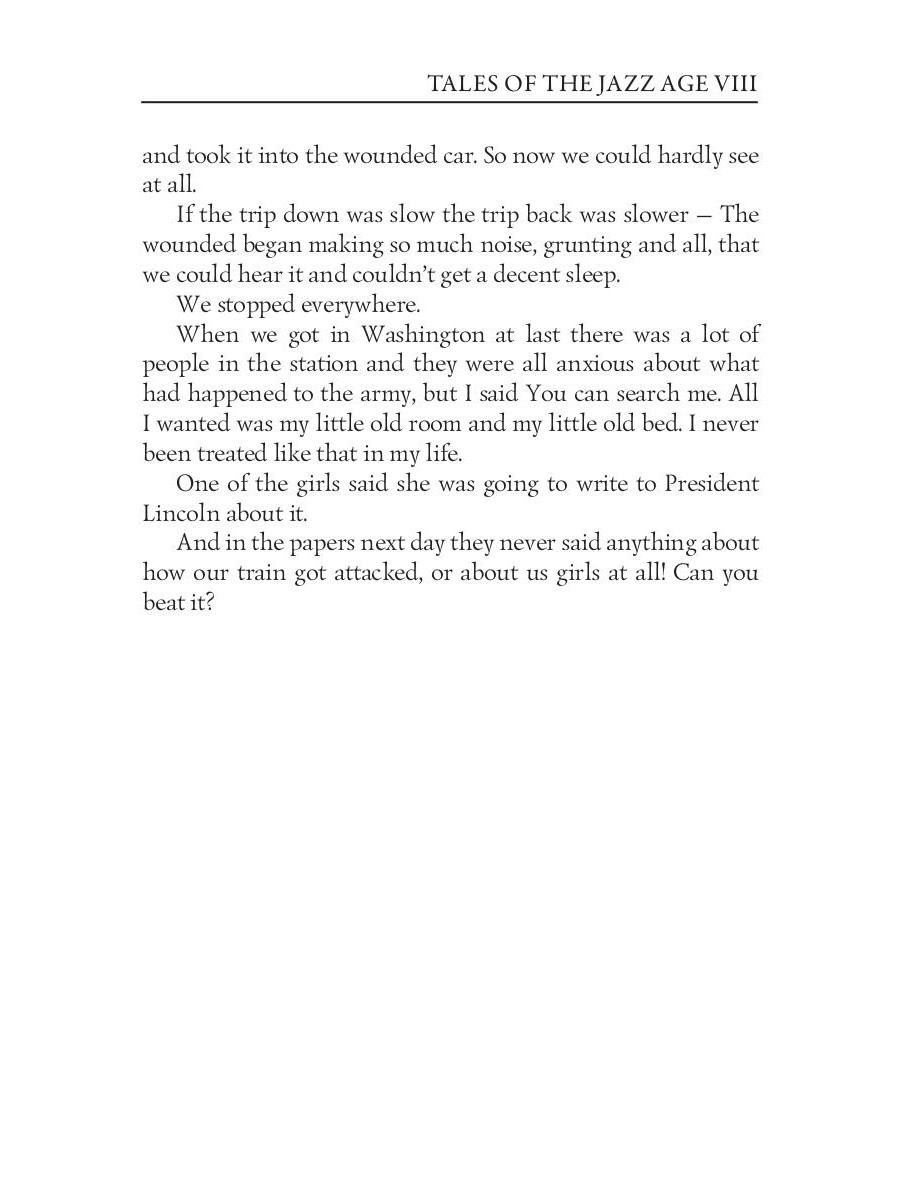 F. S. Fitzgerald was an American writer, whose works illustrate the Jazz Age. Tales of Jazz Age VIII is a collection of brilliant short stories, including Two Wrongs and an ironic The Night of Chancellorsville in which a trainload of light ladies is catapulted unawares into the realities of the Civil War.| Издательство | Т8 RUGRAM |