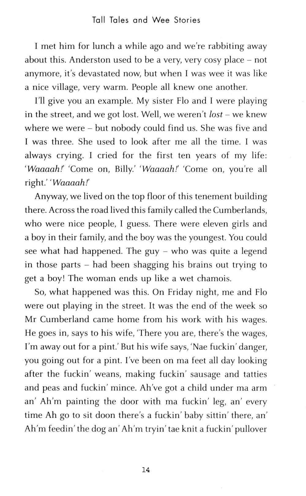 In December 2018, after 50-years of belly-laughs, energy, outrage and enjoyment, Billy Connolly announced his retirement from stand-up comedy. His has been an extraordinary career. When he first started out in the late Sixties, Billy played the banjo in the folk clubs of Glasgow. Between songs, he would improvise a bit, telling anecdotes from the Clyde shipyard where he worked. Soon, the songs became shorter and the monologues longer, and Billy quickly became recognized as one of the most exciting comedians of his generation. Billy's routines always felt spontaneous. He improvised, embellished and digressed as he went along. He brought a beautiful sense of the absurd to his shows as he riffed on holidays, alcohol, the crucifixion, or naked bungee jumping. But Billy's comedy could be laced with anger too. He hated pretentiousness and called out hypocrisy where ever he saw it. Billy had the popular touch. His comedy spanned generations and different social tribes in a way that few others have ever managed. Tall Tales and Wee Stories brings together the very best of Billy's storytelling for the first time and features his most famous routines including, The Last Supper, Jojoba Shampoo, Incontinence Pants and Shouting at Wildebeest. With an introduction and original illustrations by Billy, it is an inspirational, energetic and riotously funny read, and a fitting celebration of one of the finest comedians.| Издательство | Two Roads |