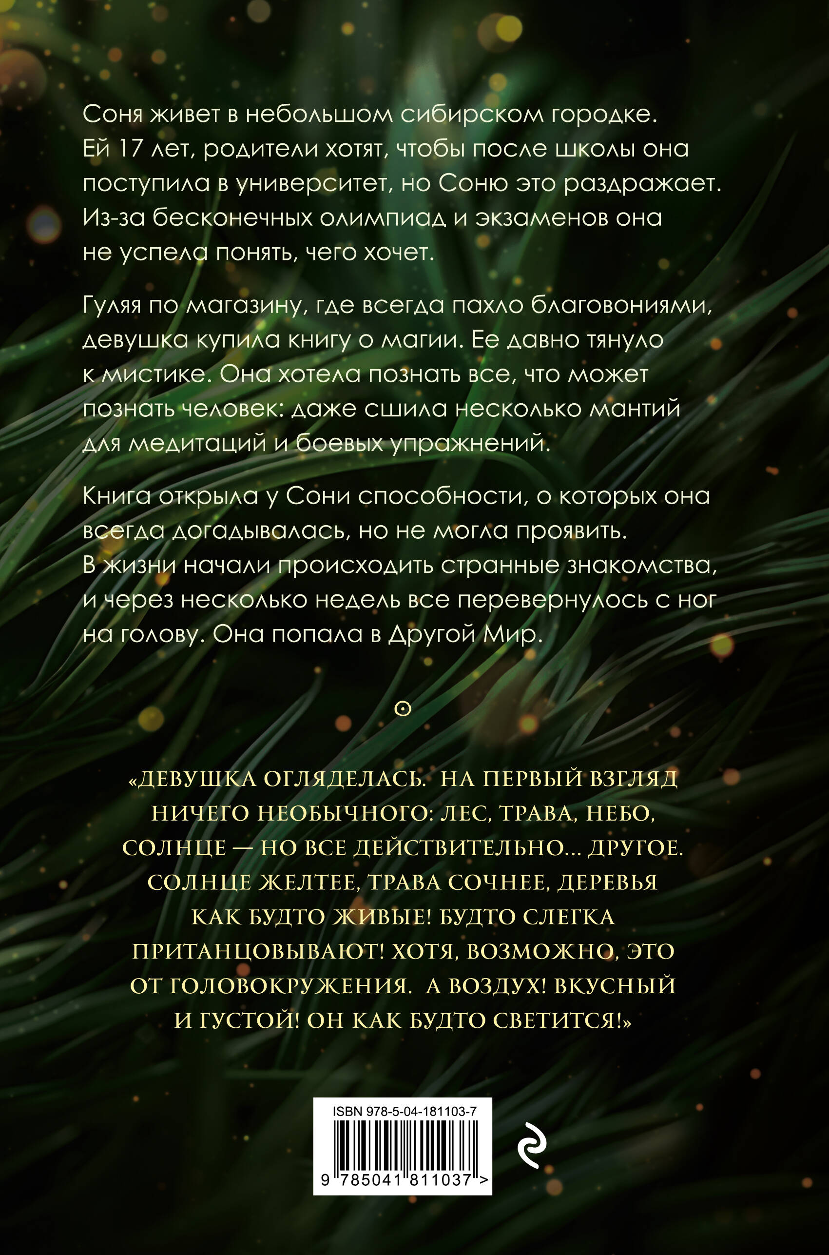 Соня живет в небольшом сибирском городке. Ей 17 лет, родители хотят, чтобы после школы она поступила в университет, но Соню это раздражает. Из-за бесконечных олимпиад и экзаменов она не успела понять, чего хочет. Гуляя по магазину, где всегда пахло благовониями, девушка купила книгу о магии. Ее давно тянуло к мистике. Она хотела познать все, что может познать человек: даже сшила несколько мантий для медитаций и боевых упражнений. Книга открыла у Сони способности, о которых она всегда догадывалась, но не могла проявить. В жизни начали происходить странные знакомства, и через несколько недель все перевернулось с ног на голову. Она попала в Другой Мир. Первая книга серии. Фэнтези о поиске своей уникальности.