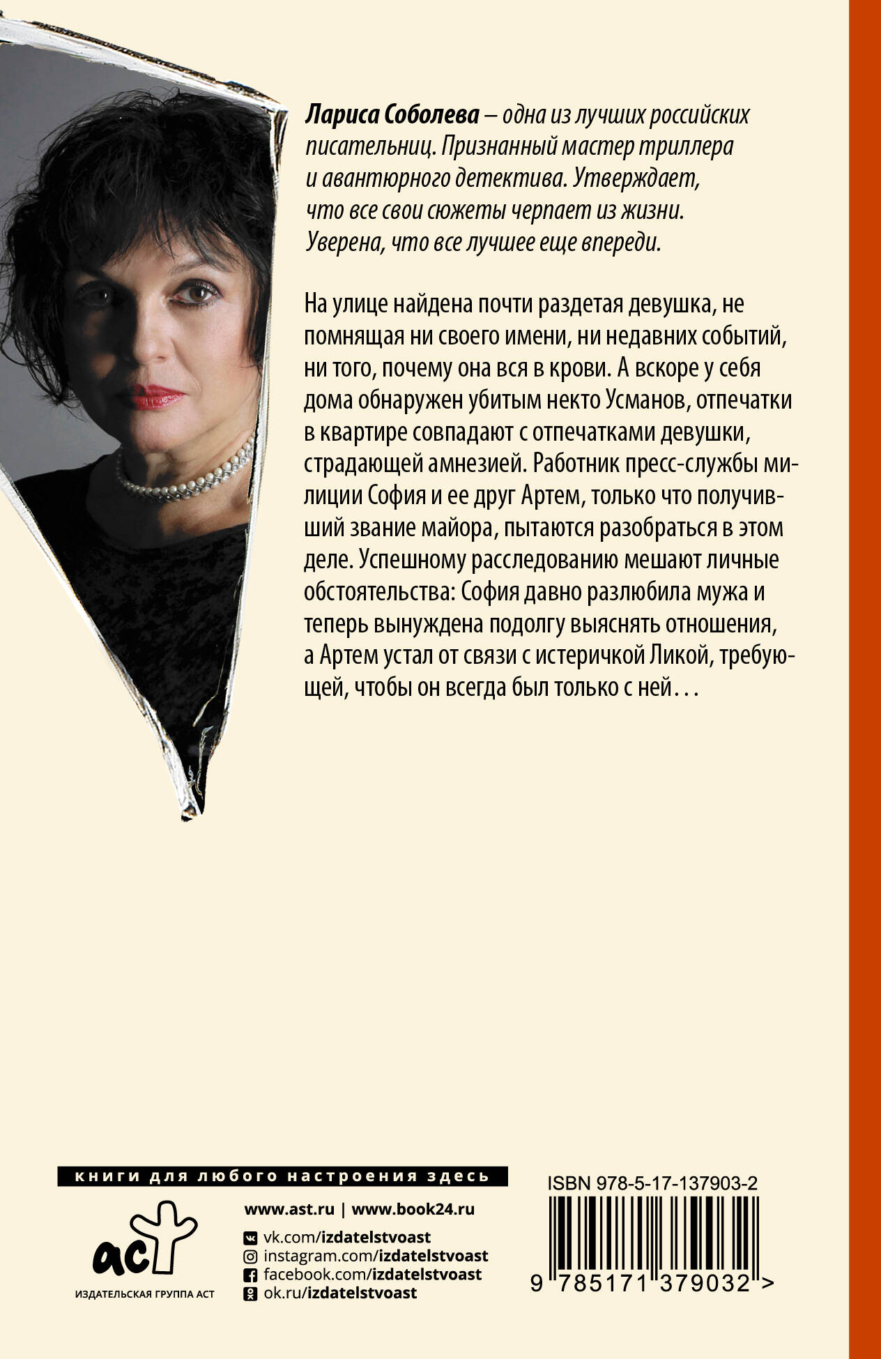 На улице найдена почти раздетая девушка, не помнящая ни своего имени, ни недавних событий, ни того, почему она вся в крови. А вскоре у себя дома обнаружен убитым некто Усманов, отпечатки в квартире совпадают с отпечатками девушки, страдающей амнезией. Работник пресс-службы милиции София и ее друг Артем, только что получивший звание майора, пытаются разобраться в этом деле. Успешному расследованию мешают личные обстоятельства: София давно разлюбила мужа и теперь вынуждена подолгу выяснять отношения, а Артем устал от связи с истеричкой Ликой, требующей, чтобы он всегда был только с ней...