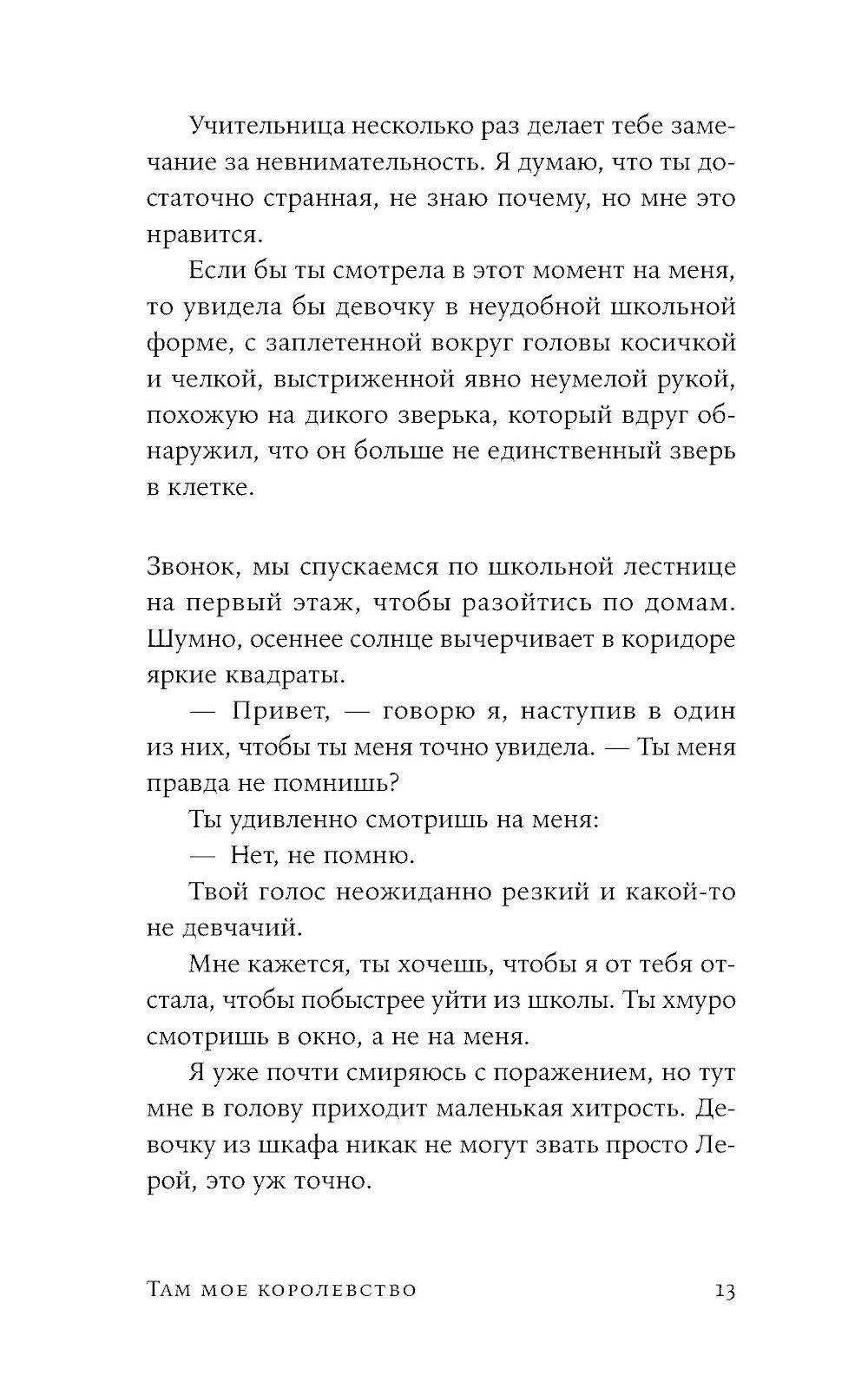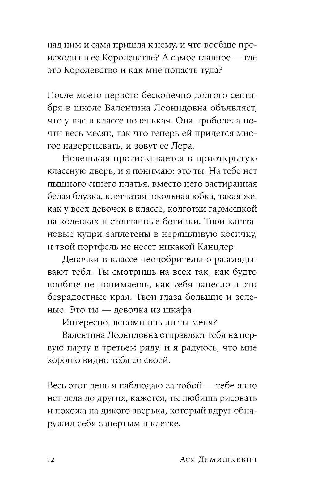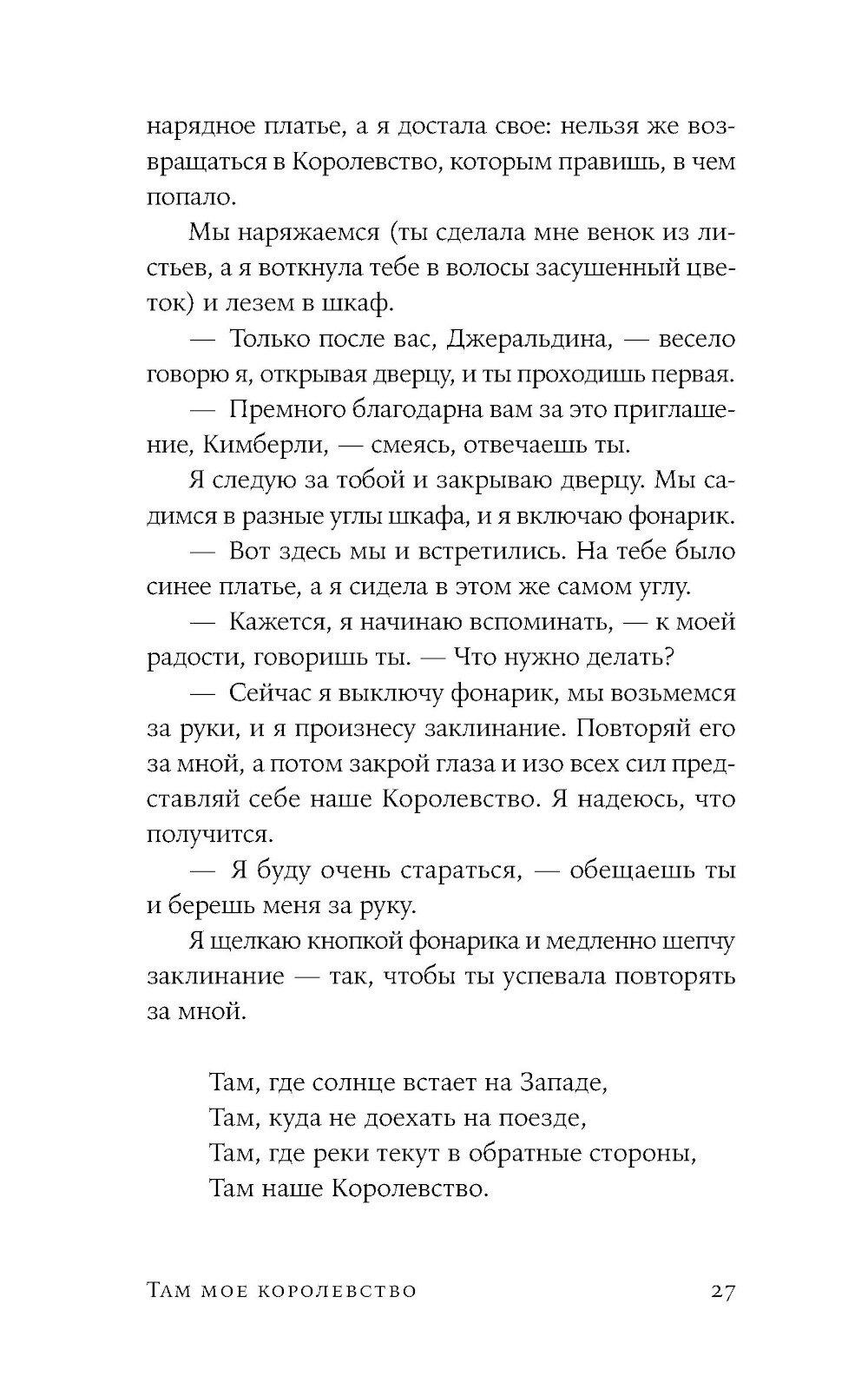 Их зовут Кимберли и Джеральдиной и у них есть целое Королевство. На самом деле они - Аня и Лера, и самое ценное, что у них есть - дружба, которую нужно оберегать от посторонних, а особенно от родителей. Отец Ани - ярый коммунист, а мать Леры - сектантка. Эти двое ненавидят друг друга и мешают общению дочерей. Девочки с помощью ритуалов и заклинаний бегут в вымышленный мир, чтобы справиться с жизненными трудностями: прячутся от отцовского гнева в шкафу, сражаются со школьными хулиганами и противостоят попыткам матери Леры сделать из дочери истово верующую. Королевство помогает им, но смогут ли его стены выдержать испытание взрослением? Что делать, когда враг оказывается не снаружи, а внутри?| Издательство | Альпина нон-фикшн |