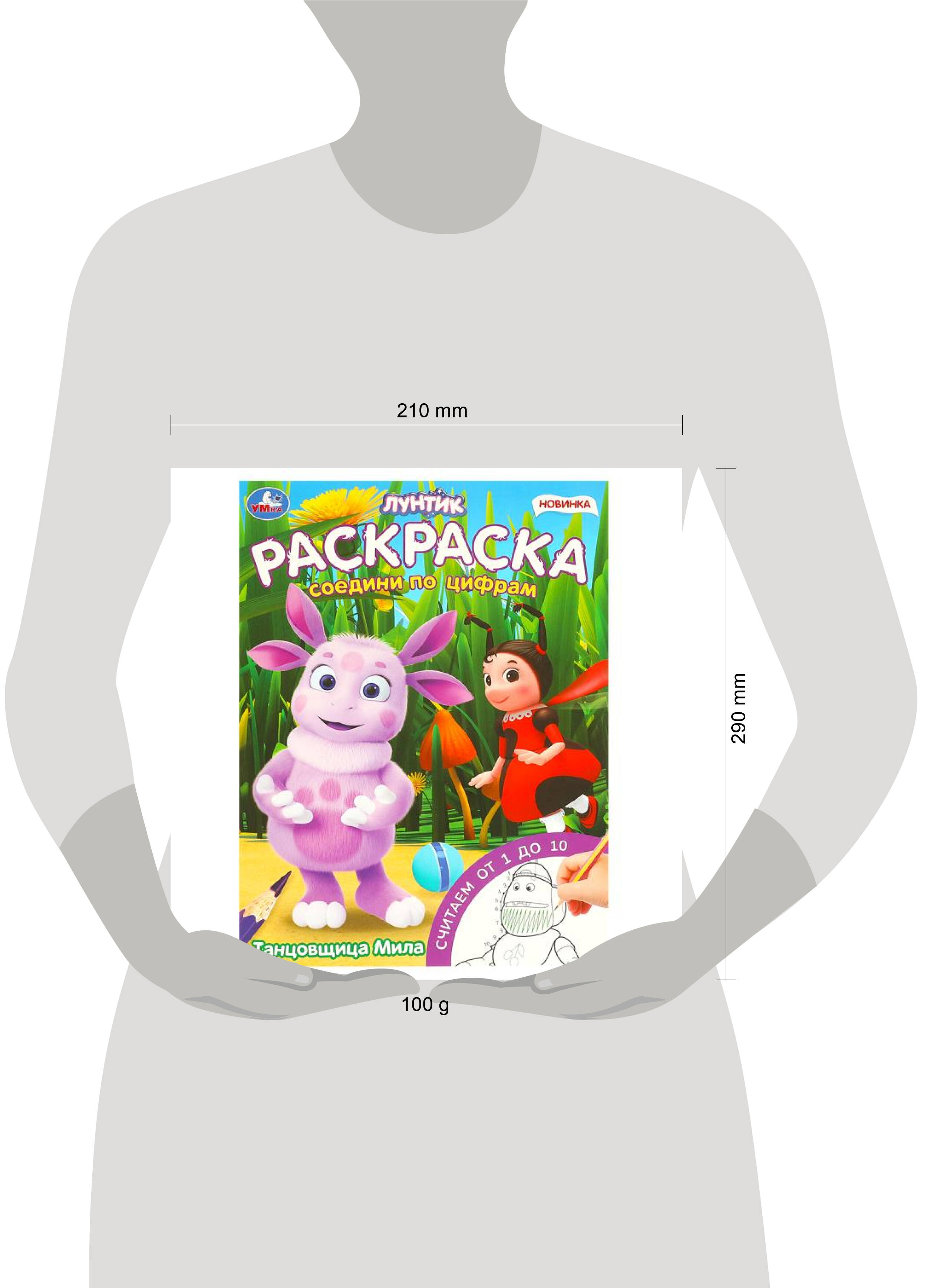 Раскраска "Танцовщица Мила" из серии "Соедини по цифрам" ТМ "УМка" - интересный и полезный досуг для маленького поклонника мультсериала про Лунтика и его друзей: - считаем от 1 до 20 - соединяем точки по порядку номеров - тщательно прорисованные картинки для раскрашивания - интересные иллюстрации с популярным персонажем - короткие сюжетные тексты к рисункам Занимательная раскраска с любимыми героями подарит детям радость, поможет раскрыть творческий потенциал и развить мелкую моторику. Соединяя точки по порядку номеров, ребёнок научится считать, закрепит названия и последовательность цифр - и всё это во время увлекательной игры! Занятия с раскраской ТМ "УМка" способствуют развитию: - творческого мышления - внимания - усидчивости Объём: 16 стр. Формат: 214 x 290 мм (А4). Материал: офсетная бумага. Рекомендовано детям старшего дошкольного возраста.| Издательство | С-Маркет ООО |