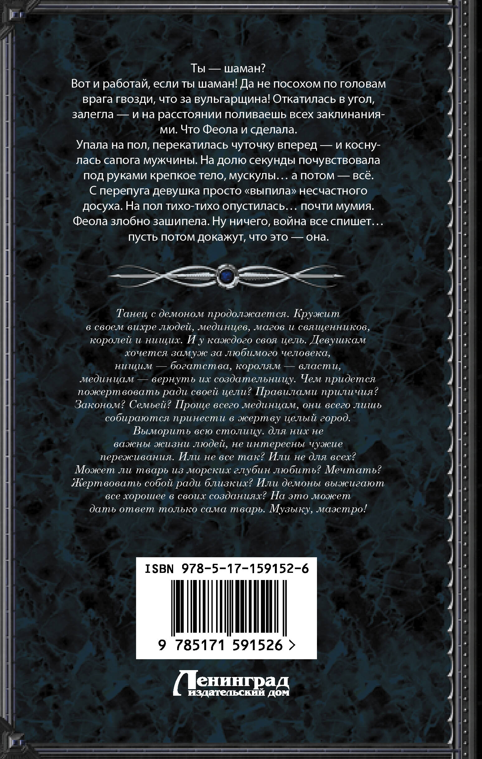 Танец с демоном продолжается. Кружит в своем вихре людей, мединцев, магов и священников, королей и нищих. И у каждого своя цель. Девушкам хочется замуж за любимого человека, нищим - богатства, королям - власти, мединцам - вернуть их создательницу. Чем придется пожертвовать ради своей цели? Правилами приличия? Законом? Семьей? Проще всего мединцам, они всего лишь собираются принести в жертву целый город. Выморить всю столицу. для них не важны жизни людей, не интересны чужие переживания.Или не все так? Или не для всех? Может ли тварь из морских глубин любить? Мечтать? Жертвовать собой ради близких? Или демоны выжигают все хорошее в своих созданиях? На это может дать ответ только сама тварь. Музыку, маэстро!| Издательство | ИЗДАТЕЛЬСТВО "АСТ" |