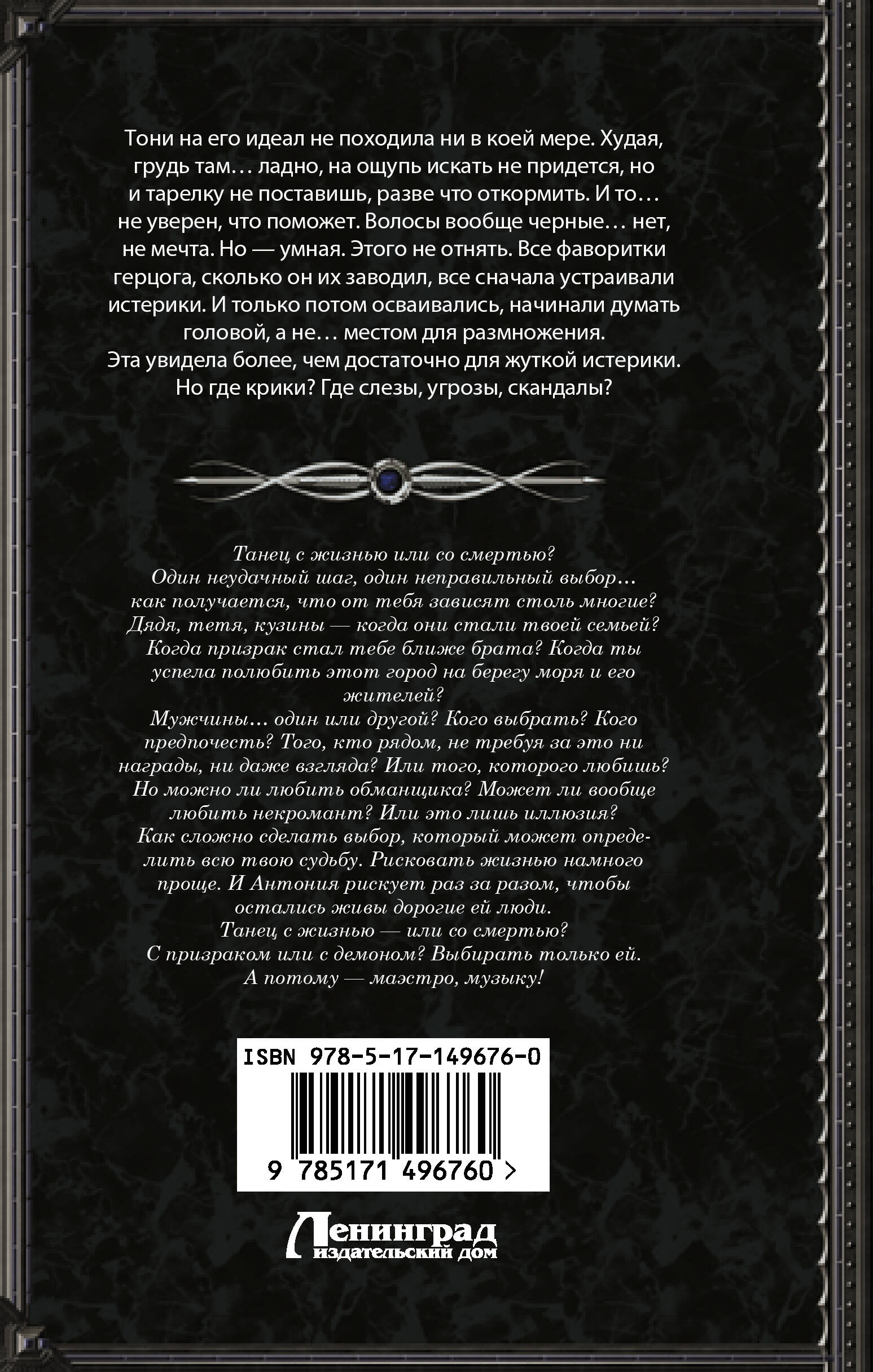 Танец. Танец с жизнью или со смертью? Один неудачный шаг, один неправильный выбор… как получается, что от тебя зависят столь многие? Дядя, тетя, кузины - когда они стали твоей семьей? Когда призрак стал тебе ближе брата? Когда ты успела полюбить этот город на берегу моря и его жителей? Мужчины… один или другой? Кого выбрать? Кого предпочесть? Того, кто рядом, не требуя за это ни награды, ни даже взгляда? Или того, которого любишь? Но можно ли любить обманщика? Может ли вообще любить некромант? Или это лишь иллюзия? Как сложно сделать выбор, который может определить всю твою судьбу. Рисковать жизнью намного проще. И Антония рискует раз за разом, чтобы остались живы дорогие ей люди. Танец с жизнью - или со смертью? С призраком или с демоном? Выбирать только ей. А потому - маэстро, музыку!| Издательство | ИЗДАТЕЛЬСТВО "АСТ" |