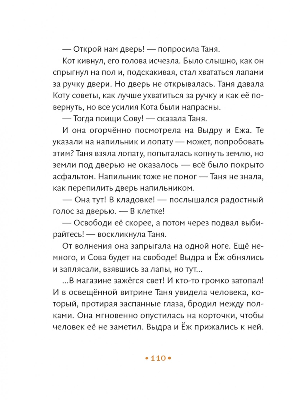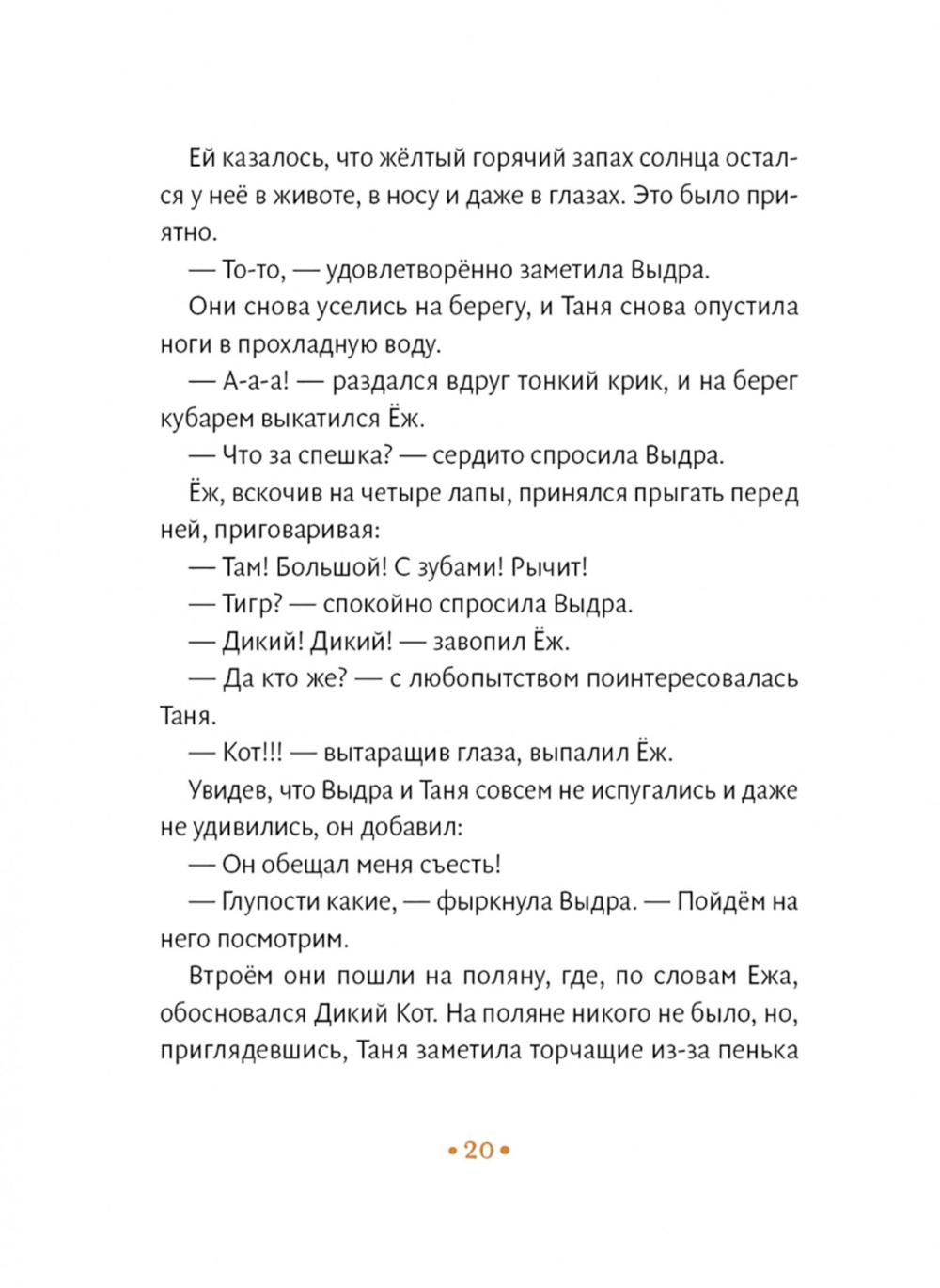 Переезд в новый дом - событие совсем не грустное. Наоборот! На новом месте обязательно встретишь новых друзей. Главное - ничему не удивляться, даже если с тобой неожиданно заговорит Выдра, или Ёж, или Сова, или Дикий Кот. Нет, Таня всё-таки удивилась, когда, гуляя в парке, встретила у ручья говорящую Выдру. А кто бы на её месте не удивился?.. Удивилась, но нисколечко не испугалась. И для Тани это стало началом большой дружбы и самых невероятных приключений. Для детей младшего школьного возраста.| Издательство | Волчок |