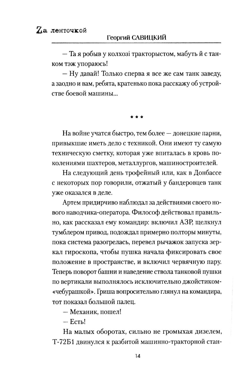 Книга посвящается танкистам отдельного батальона «Дизель» Народной милиции Донецкой Народной Республики. На основании рассказов участников боев, личного общения, воспоминаний, архивных материалов автором воссозданы наиболее значимые события в обороне ДНР: бои за Саур-Могилу, Шахтерск, Иловайск, Донецкий аэропорт, Дебальцевско-Углегорская совместная наступательная операция сил ДНРиЛНР. В яркой художественной форме описаны переживания и ощущения донецких ополченцев - вчерашних шахтеров и металлургов, вставших на защиту родного Донбасса.| Издательство | Вече |